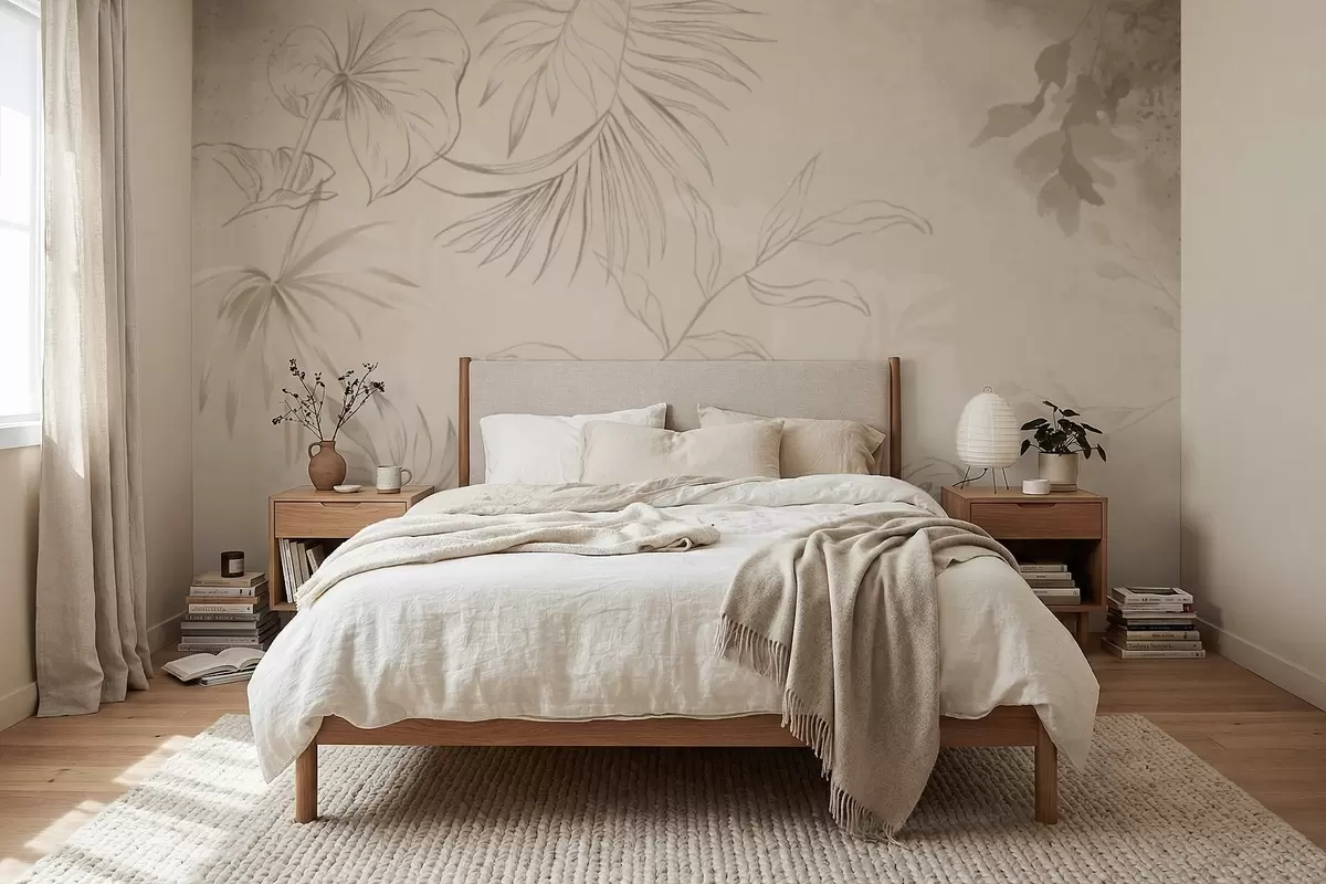 Fototapeten Lineare Pflanzen auf strukturiertem beigem Hintergrund N° w05128