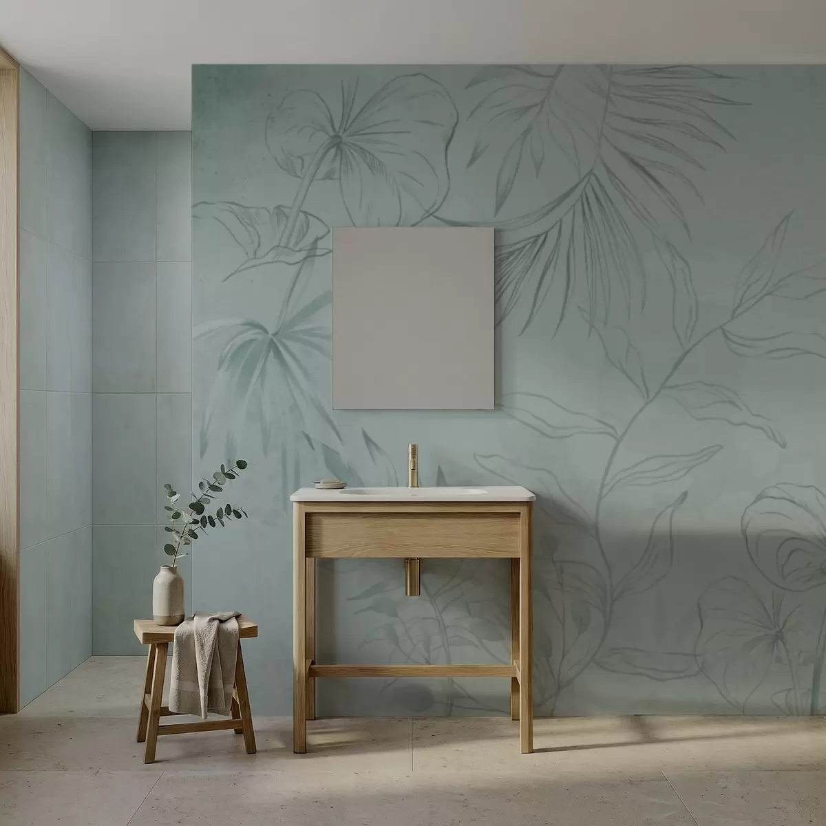 Fototapeten Lineare Pflanzen auf weichem grünlichen Hintergrund N° w05128v1