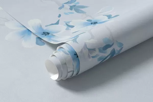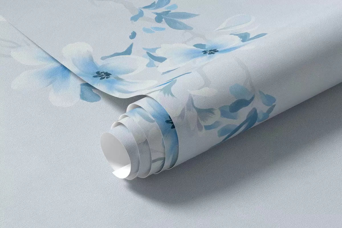 Fototapeten Zweige mit weißen und blauen Blüten vor einem kühlen Hintergrund N° w05129v2