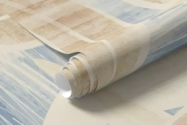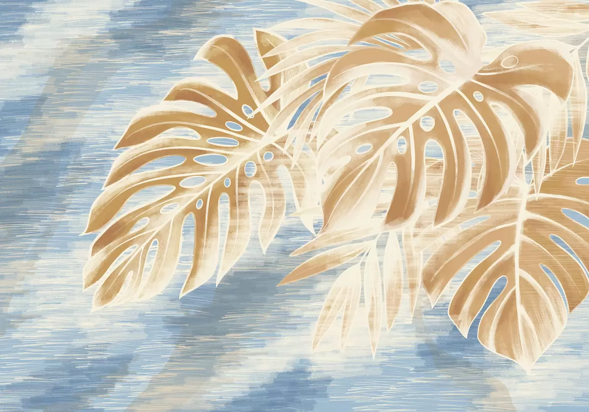 Fototapeten Blätter in hellen Sandtönen auf blauem Hintergrund N° w05130v1
