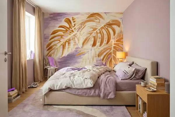 Fototapeten Blätter in warmen Orangetönen auf violettem Hintergrund N° w05130v2