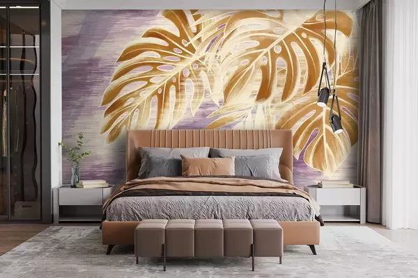 Fototapeten Blätter in warmen Orangetönen auf violettem Hintergrund N° w05130v2
