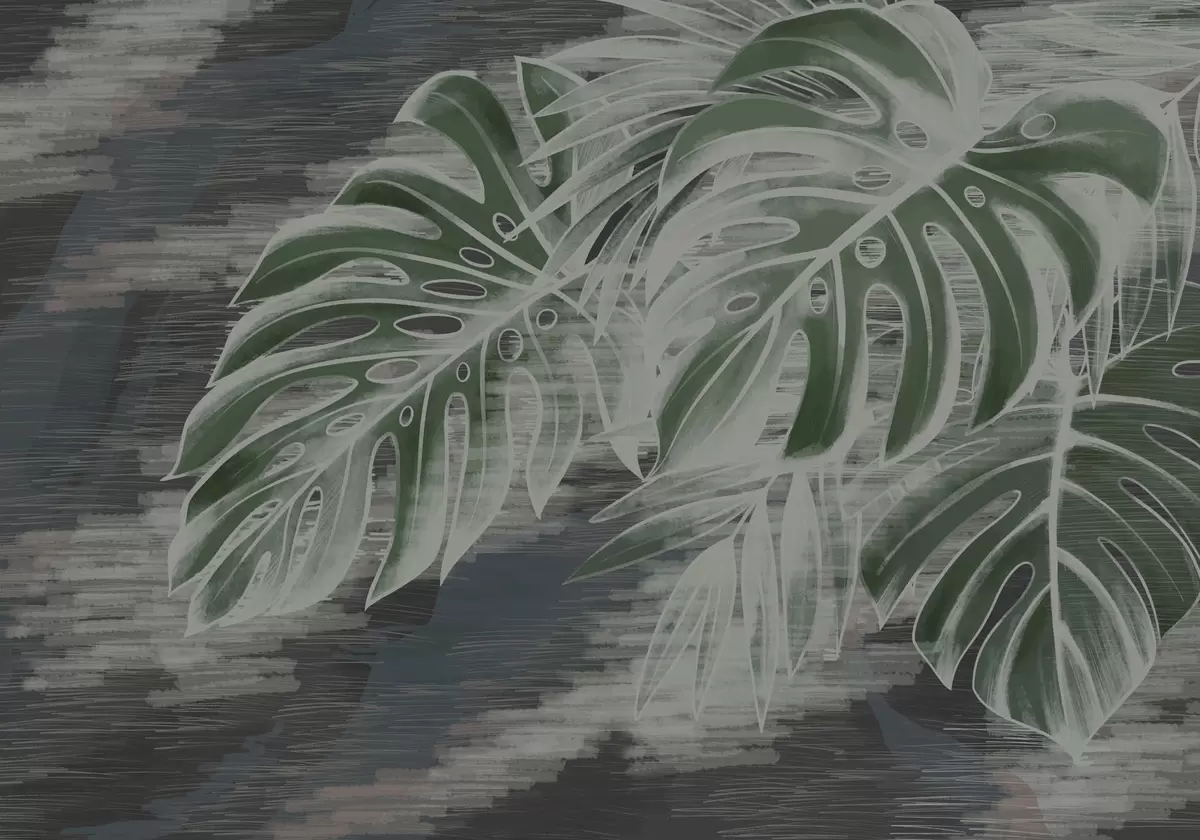 Fototapeten Dunkelgrüne Blätter auf einem strukturierten dunklen Hintergrund N° w05130v4