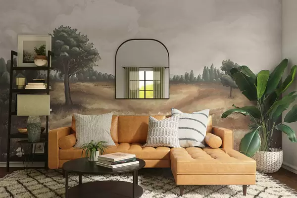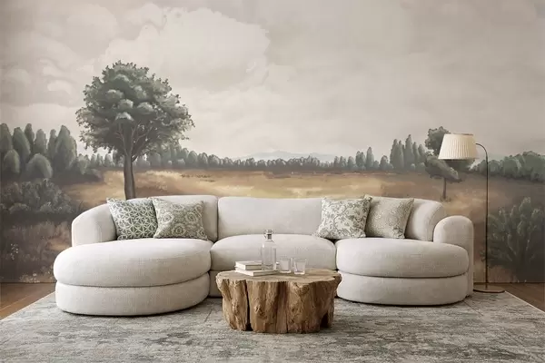 Fototapeten Gemalte Landschaft mit Bäumen und offenem Feld N° w05131