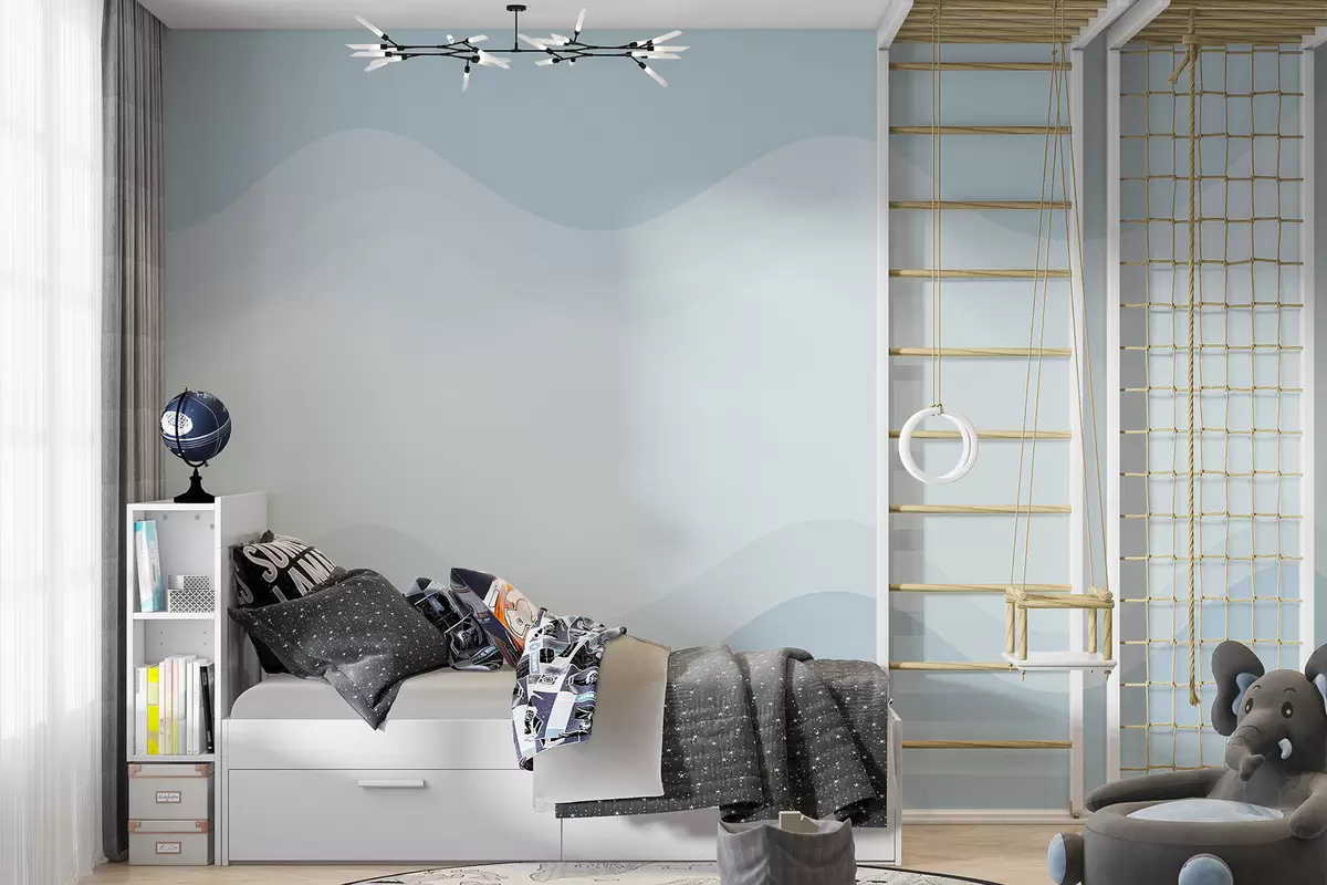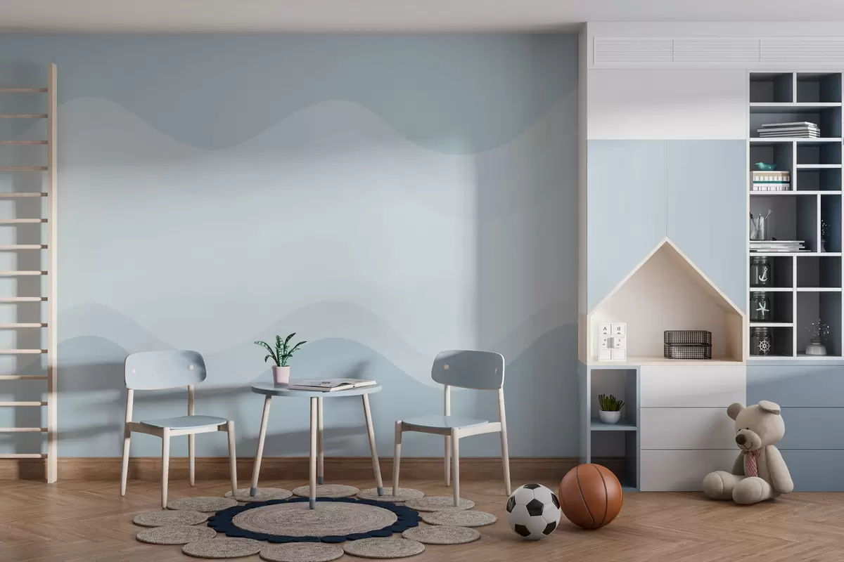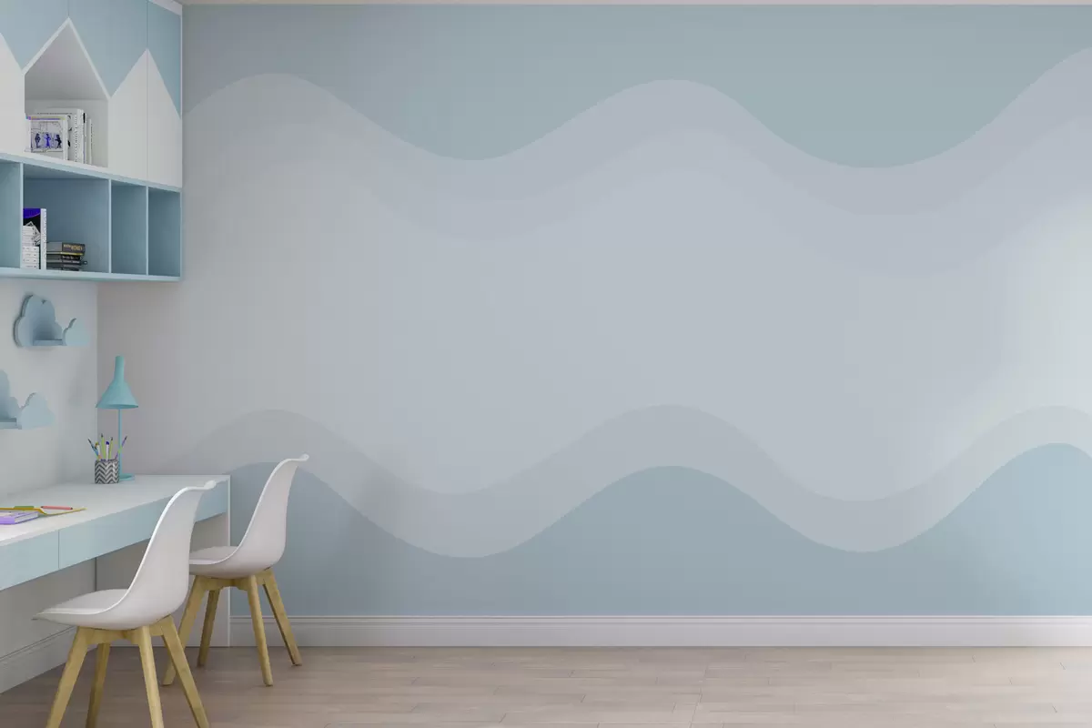 Fototapeten Abstrakte Wellen in hellblauer Farbpalette N° w05132v2