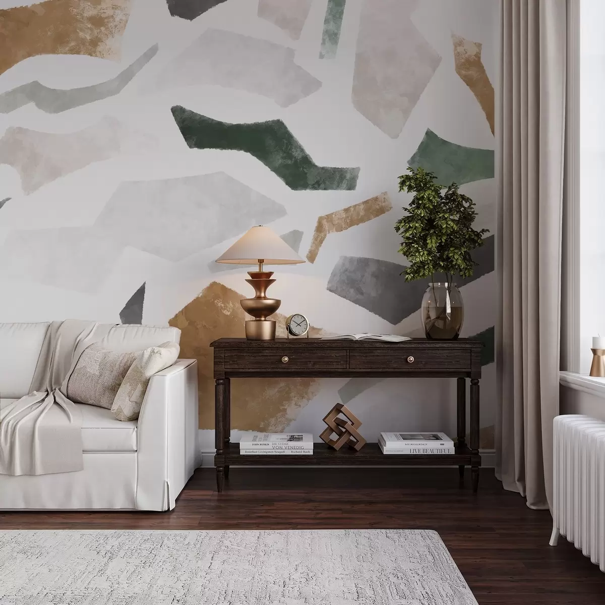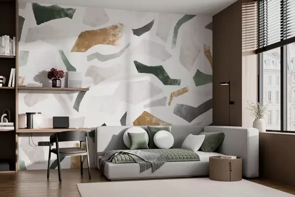 Fototapeten Abstrakte, strukturierte Fragmente in Grün- und Beigetönen N° w05146