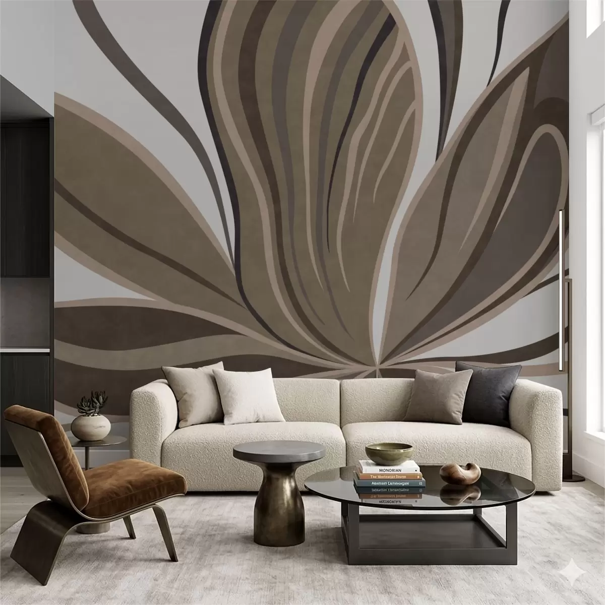 Fototapete Stilisierte Blume mit fließenden Linien in Brauntönen w05147