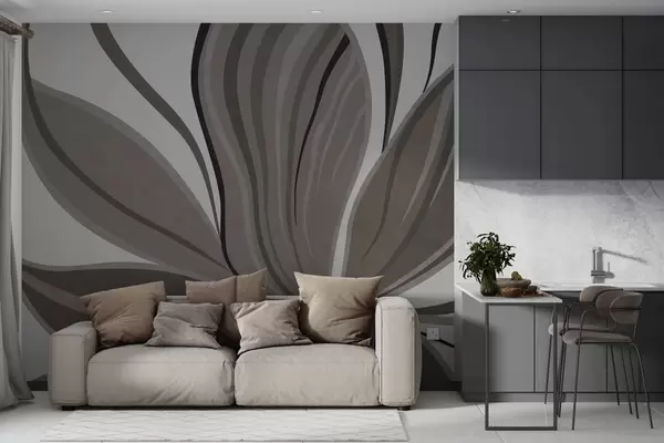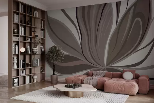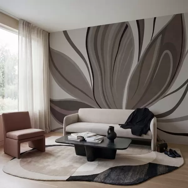 Fototapeten Abstrakte Blume mit weichen Linien in Grau- und Beigetönen N° w05147v1