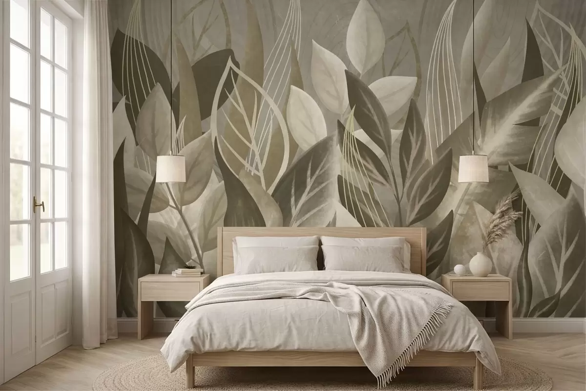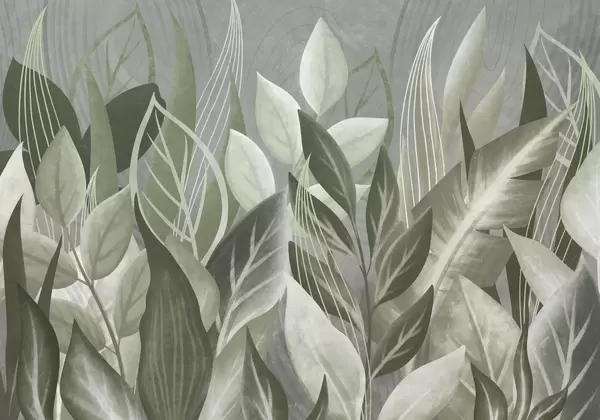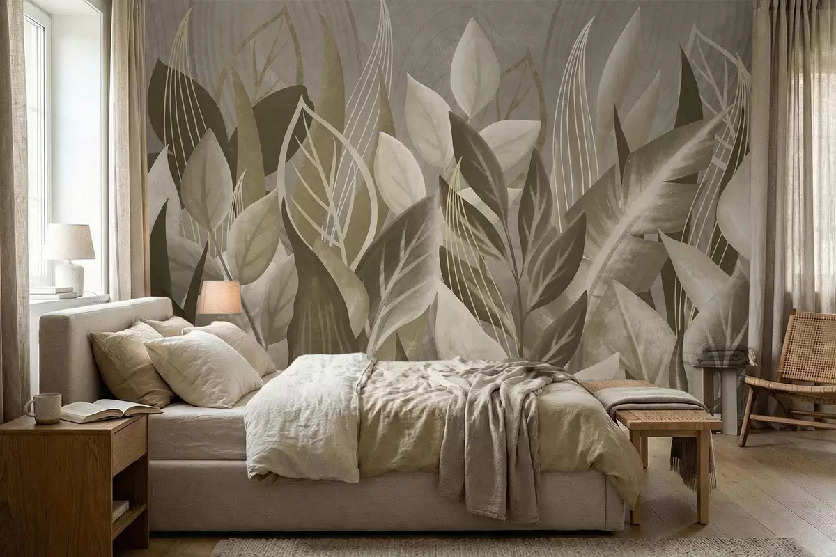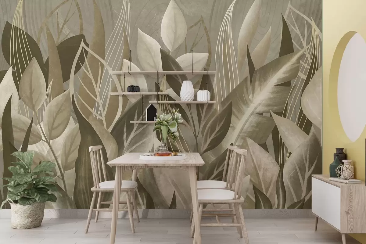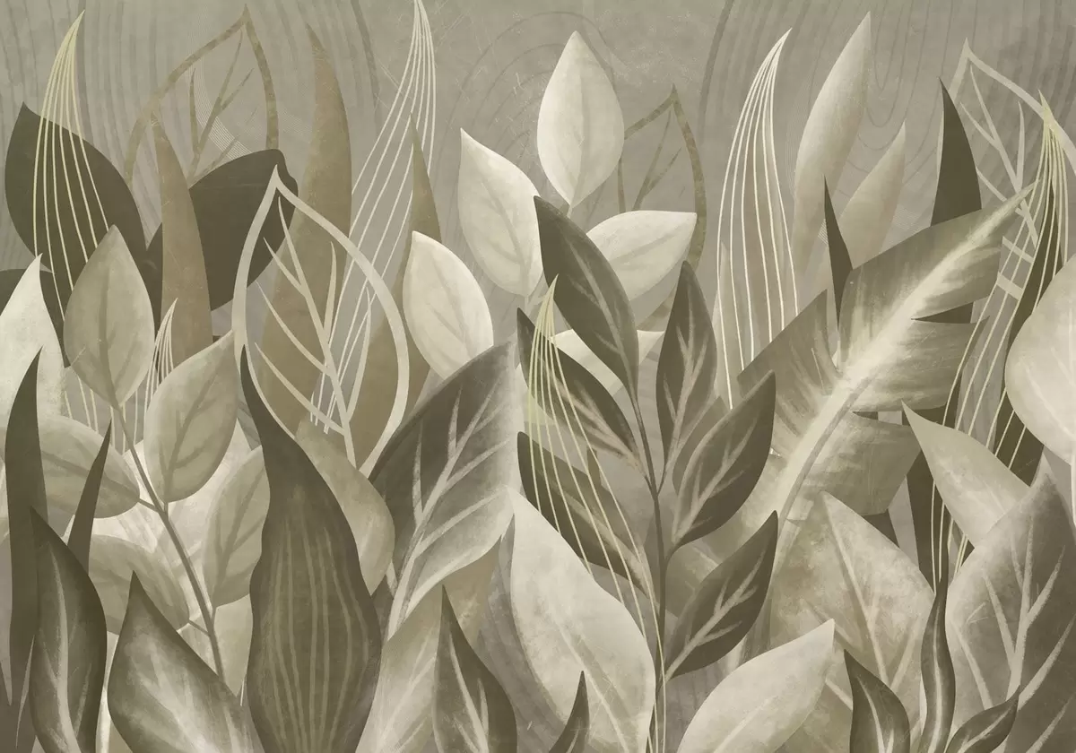 Fototapeten Abstrakte Blätter in Beige- und Grüntönen N° w05148