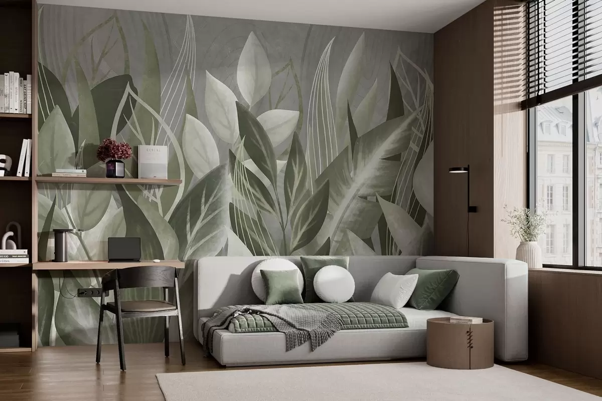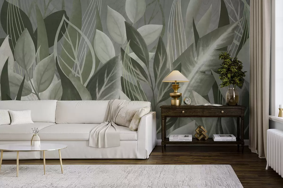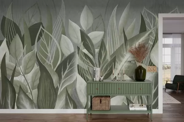 Fototapeten Abstrakte Blätter in Grau- und Grüntönen N° w05148v1