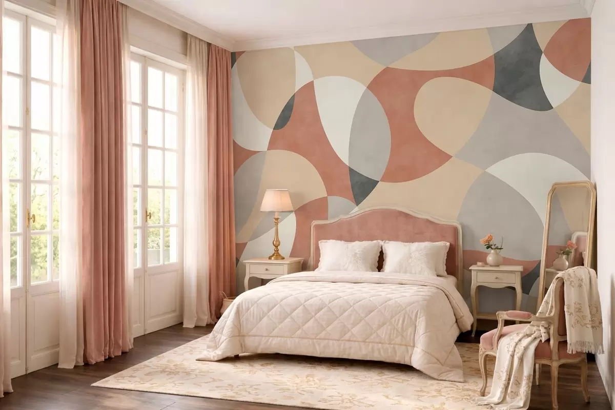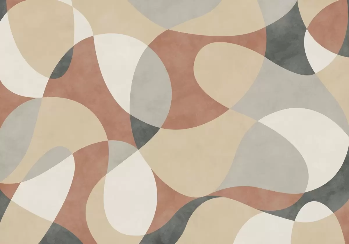 Fototapeten Abstraktes Muster mit abgerundeten Formen in warmen Farbtönen N° w05149v1