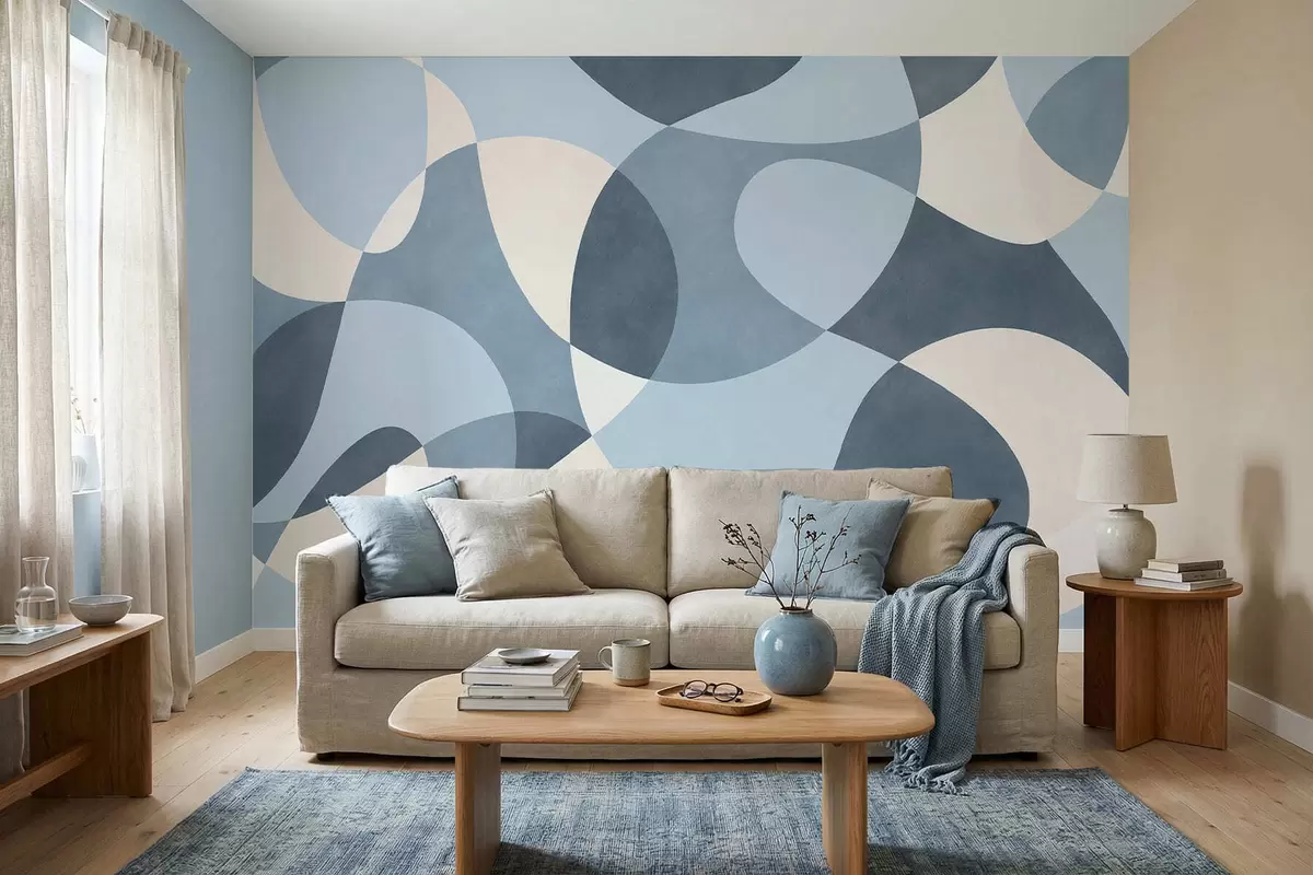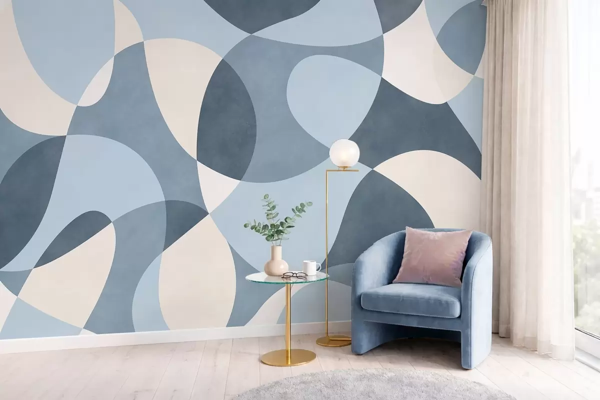 Fototapeten Abstraktes Muster mit abgerundeten Formen in Blautönen N° w05149v2