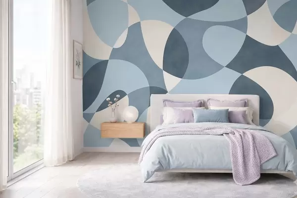Fototapeten Abstraktes Muster mit abgerundeten Formen in Blautönen N° w05149v2