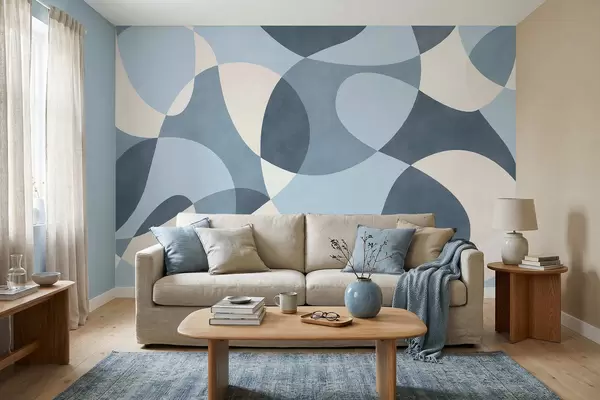 Fototapeten Abstraktes Muster mit abgerundeten Formen in Blautönen N° w05149v2