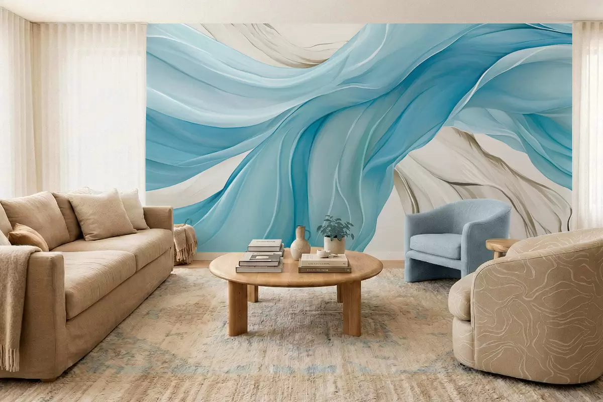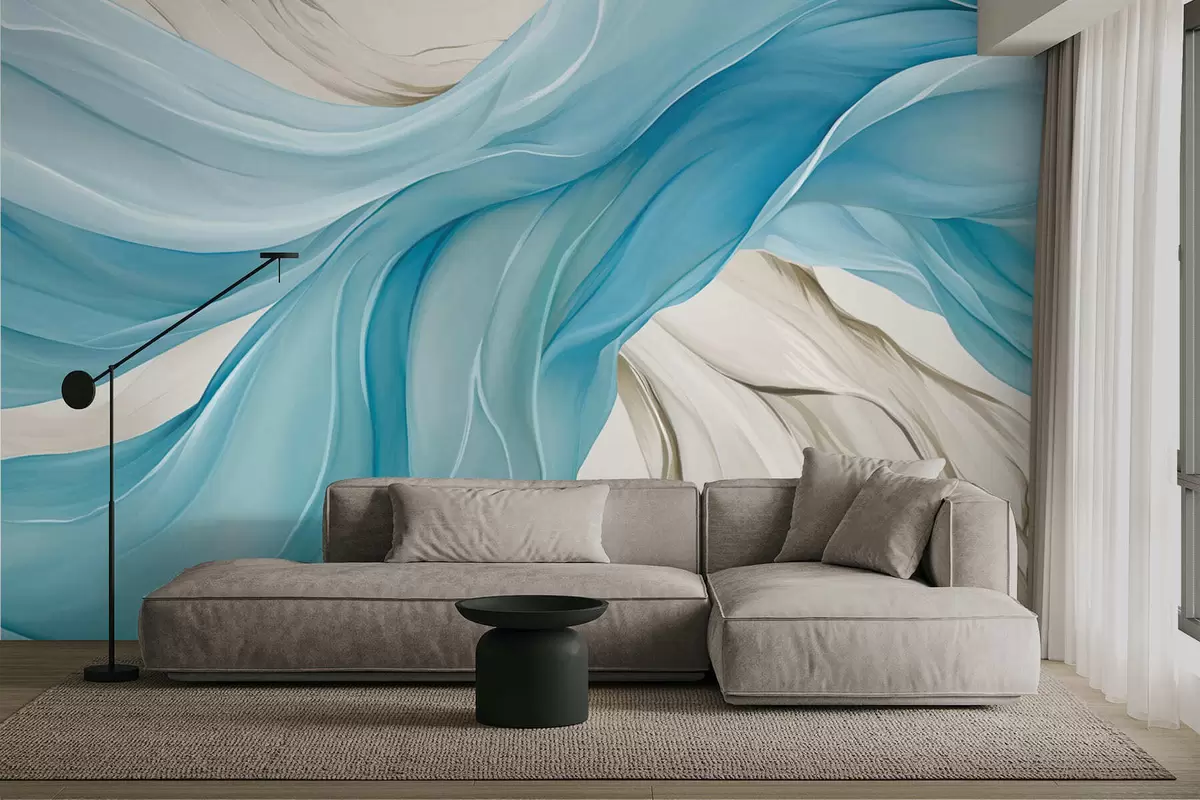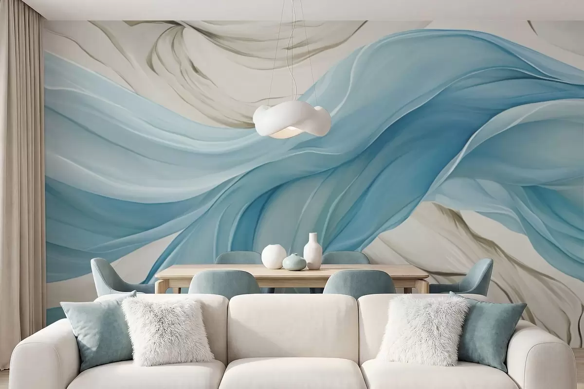 Fototapeten Fließende blaue Stoffwellen N° w05152v1