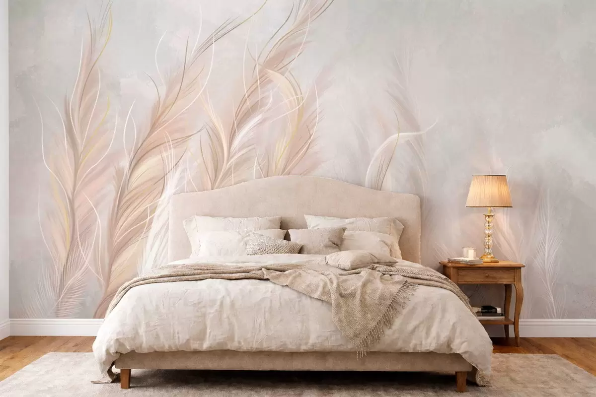 Fototapeten Weiche, abstrakte Federn in hellen, neutralen Farbtönen N° w05153