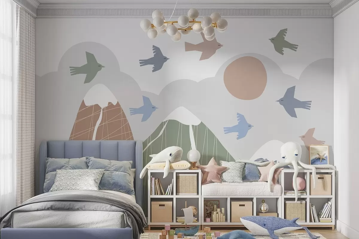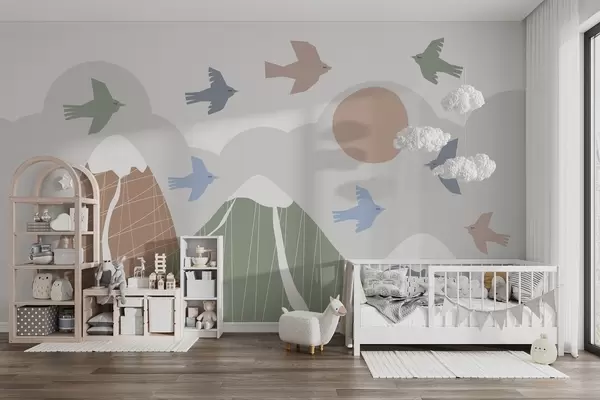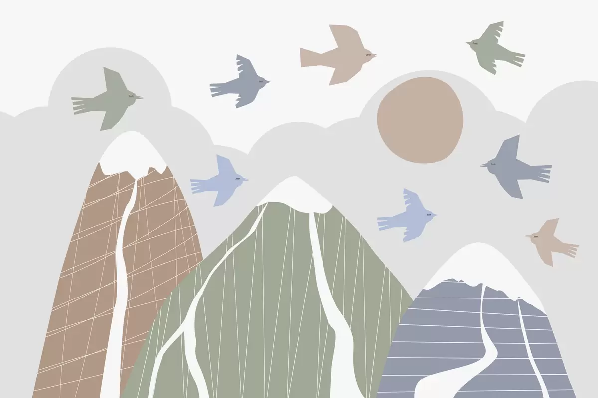 Fototapeten Skandinavische Berge und Vögel N° w05166v1