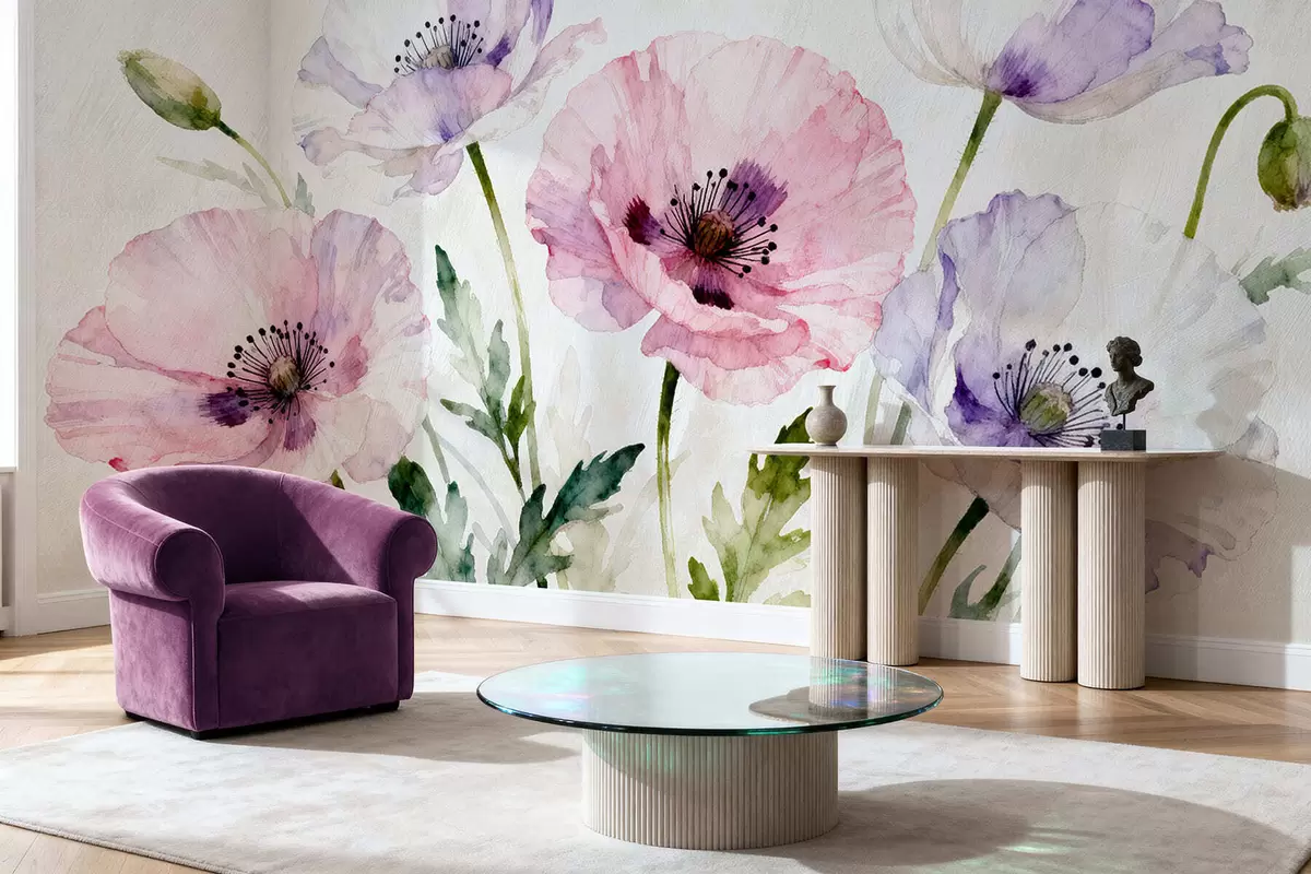 Fototapeten Aquarellierte Mohnblumen N° w05174