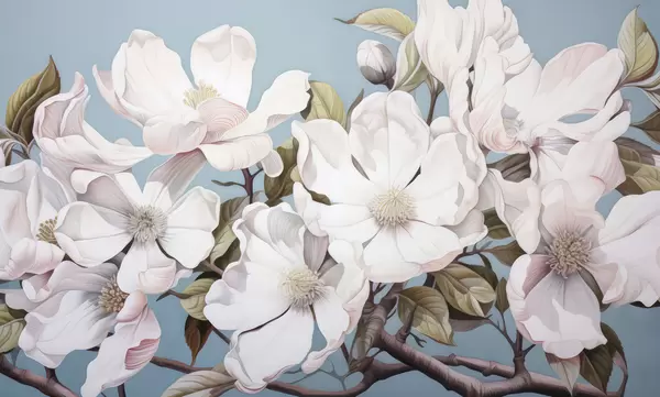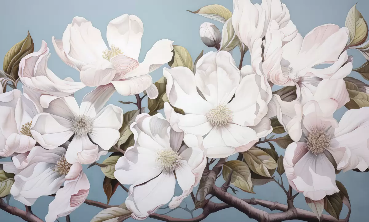 Fototapeten Üppige Blumen auf einem Ast N° w05178