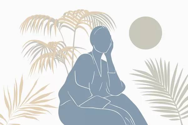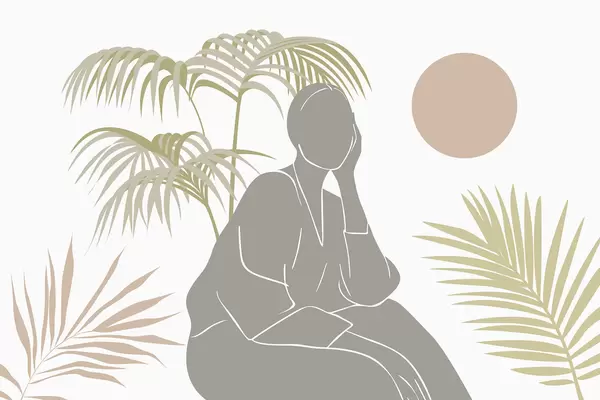 Fototapeten Silhouette einer Frau und Palmblätter N° w05190