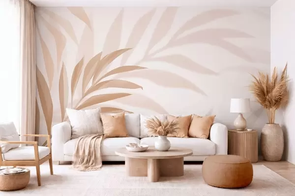 Fototapeten große, gebogene Palmblätter in Beige- und Brauntönen N° w05211