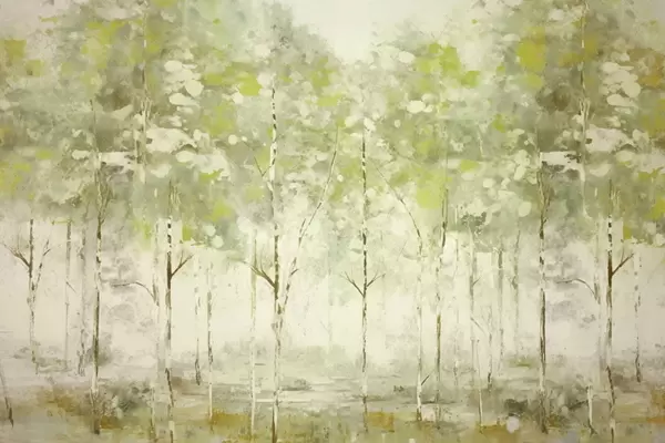 Fototapeten Stilisierter Wald mit schlanken Bäumen in warmen Farbtönen N° w05221