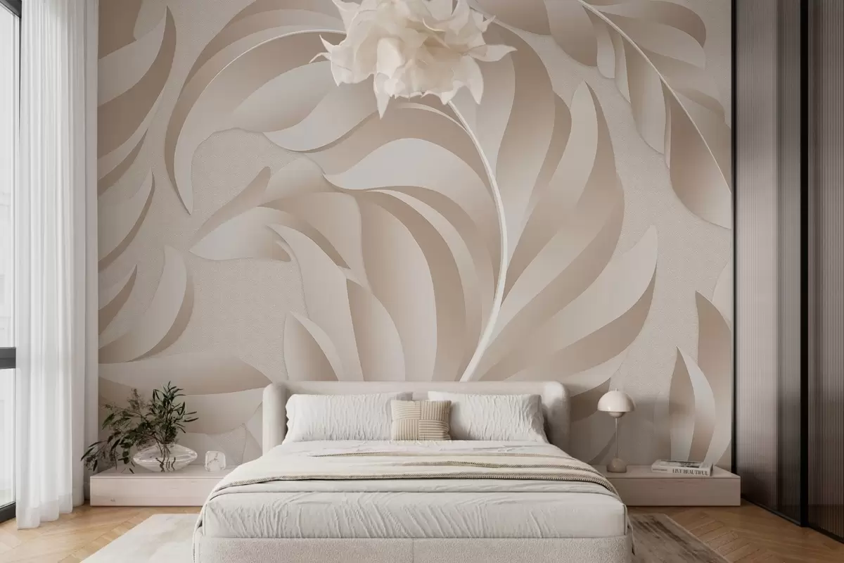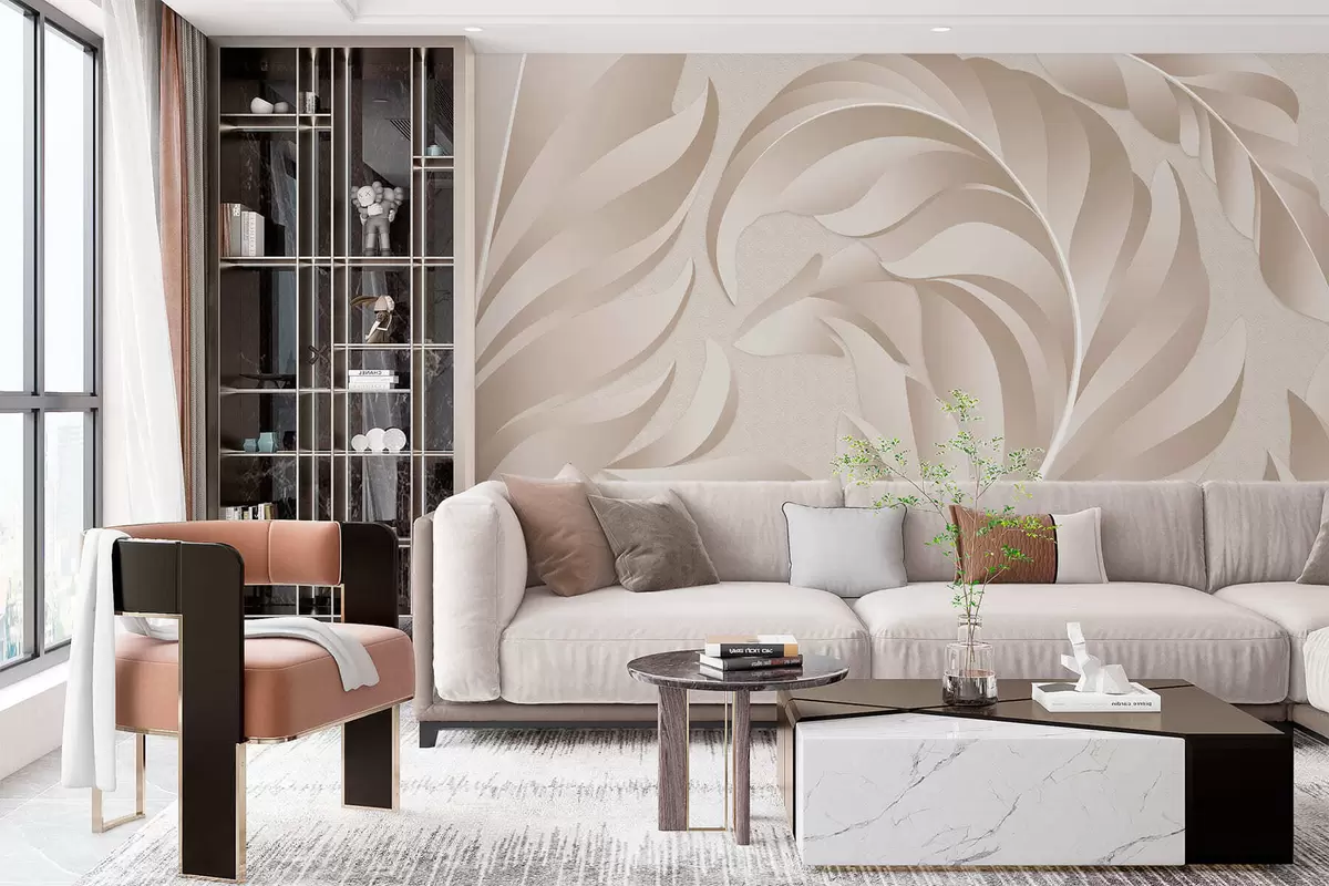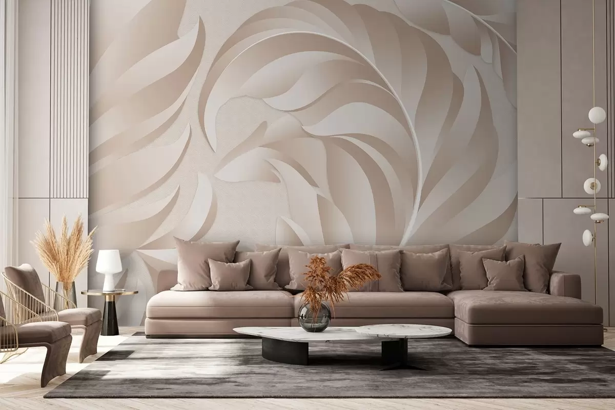 Fototapeten große strukturierte Federn in Beige- und Pudertönen N° w05231