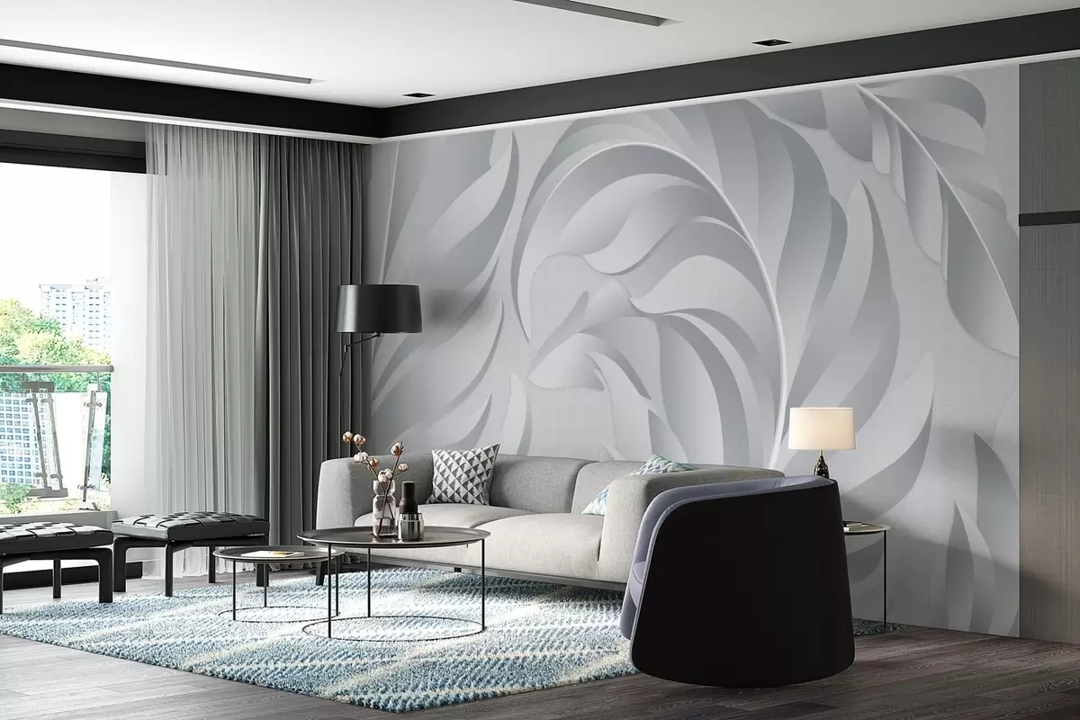 Fototapeten große strukturierte Federn in Grautönen N° w05231v3