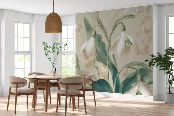 Fototapeten blühende Schneeglöckchen auf beigem Hintergrund N° w05234