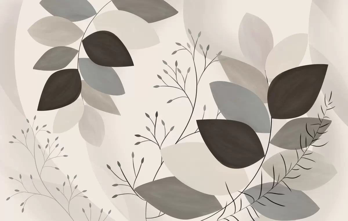 Fototapeten Blätter und Gräser in Beige-, Grau- und Brauntönen N° w05237