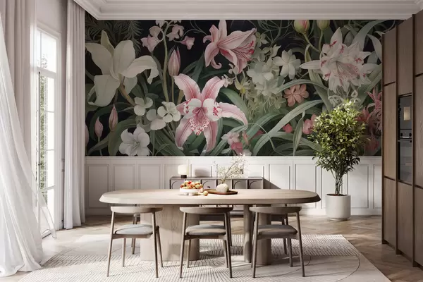 Fototapeten Fantastische Blumen auf dunklem Hintergrund N° w05278