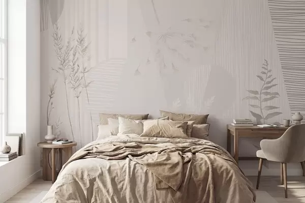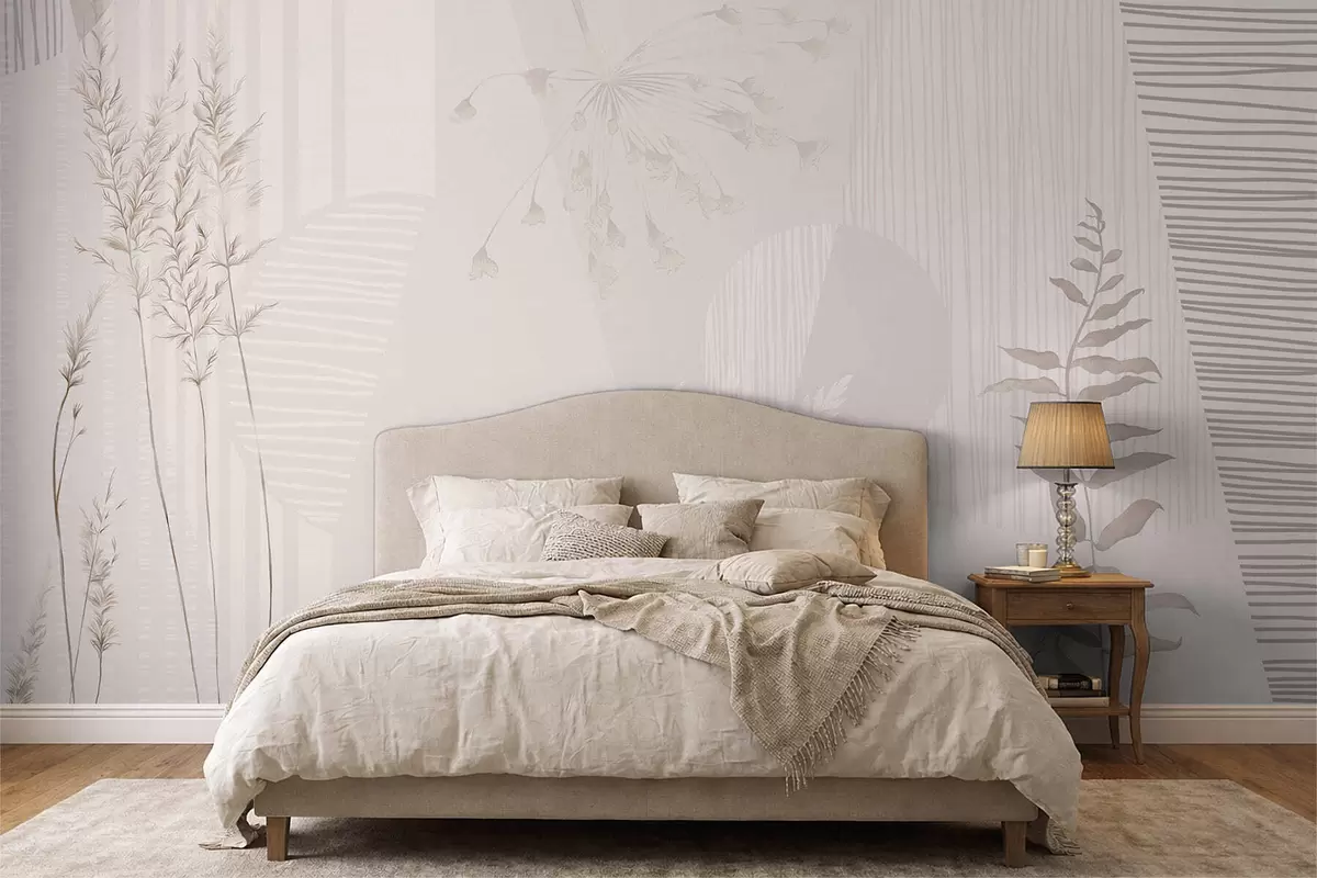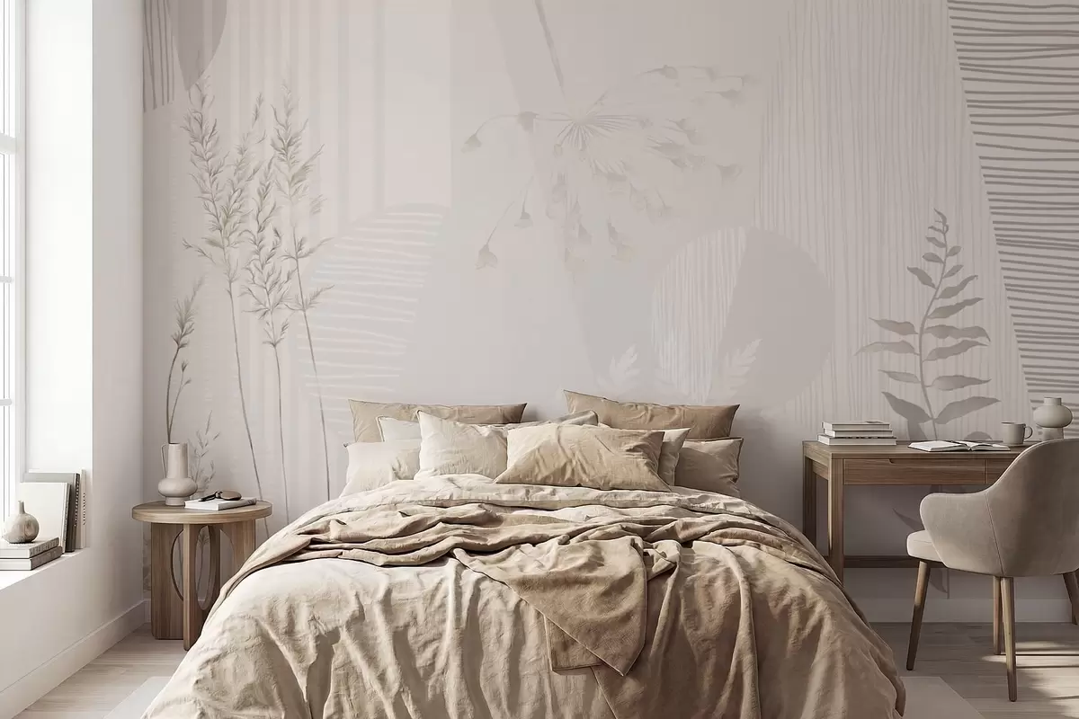 Fototapeten Minimalistische Komposition mit Gräsern und Formen N° w05318