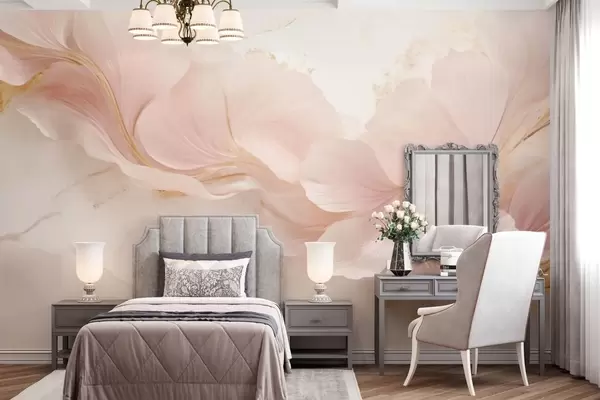 Fototapeten Zarte rosa Blumen auf hellem Hintergrund N° w05357