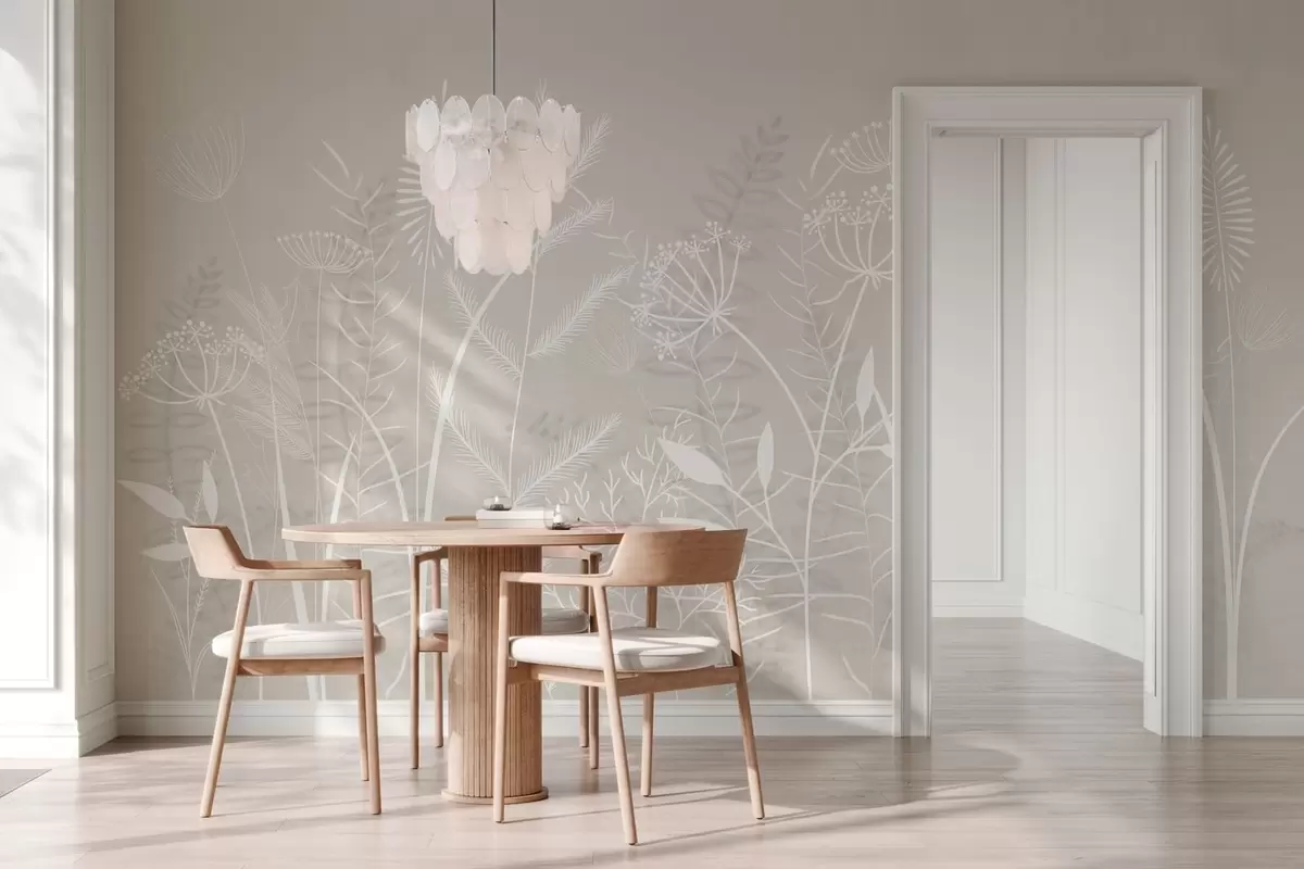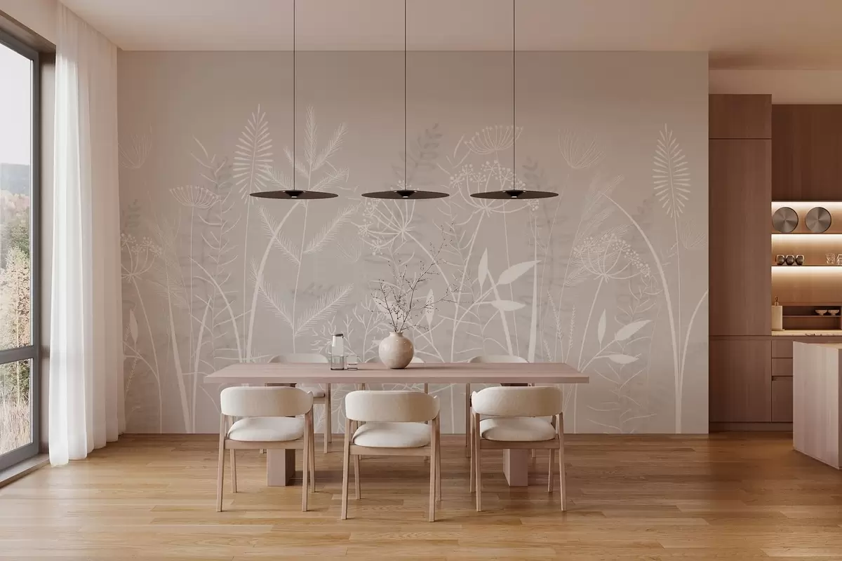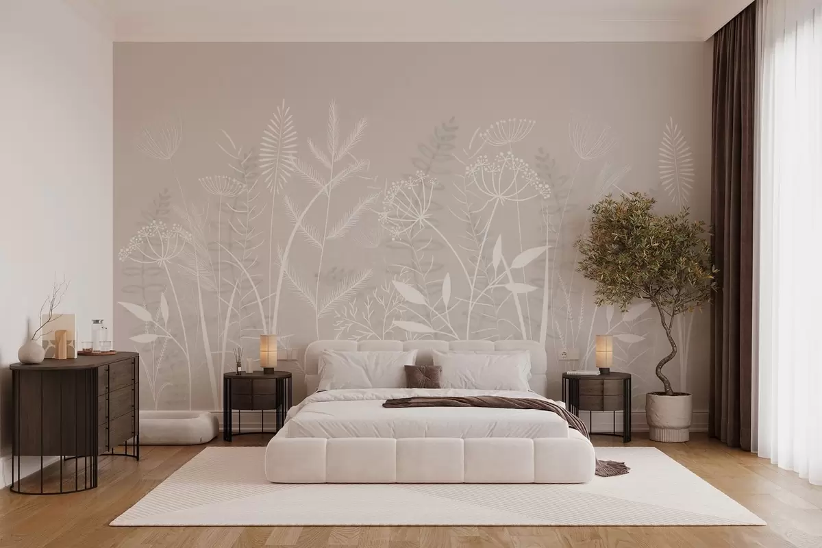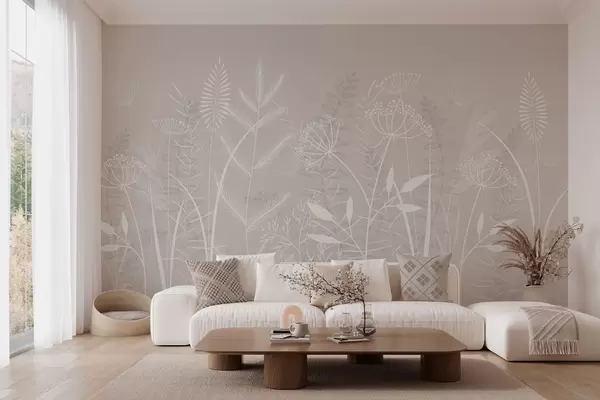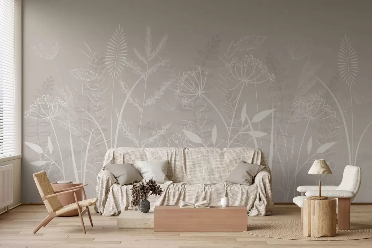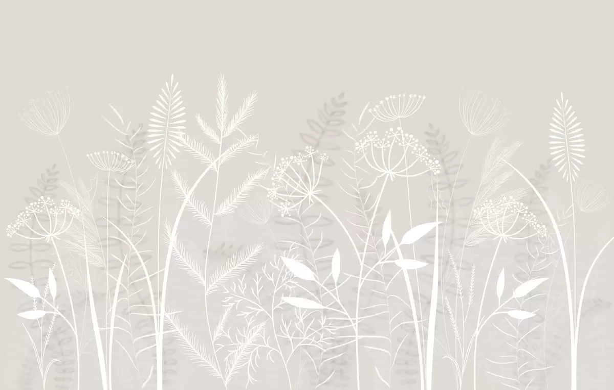 Fototapeten zarte, handgemalte Wildgräser und Blumen vor einem beigen Hintergrund N° w05383v1