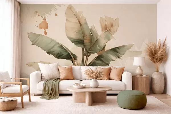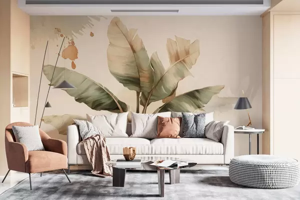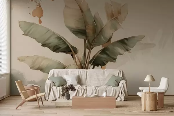 Fototapeten ein großes, malerisches Bündel Bananenblätter mit Spritzern im Retro-Stil N° w05384