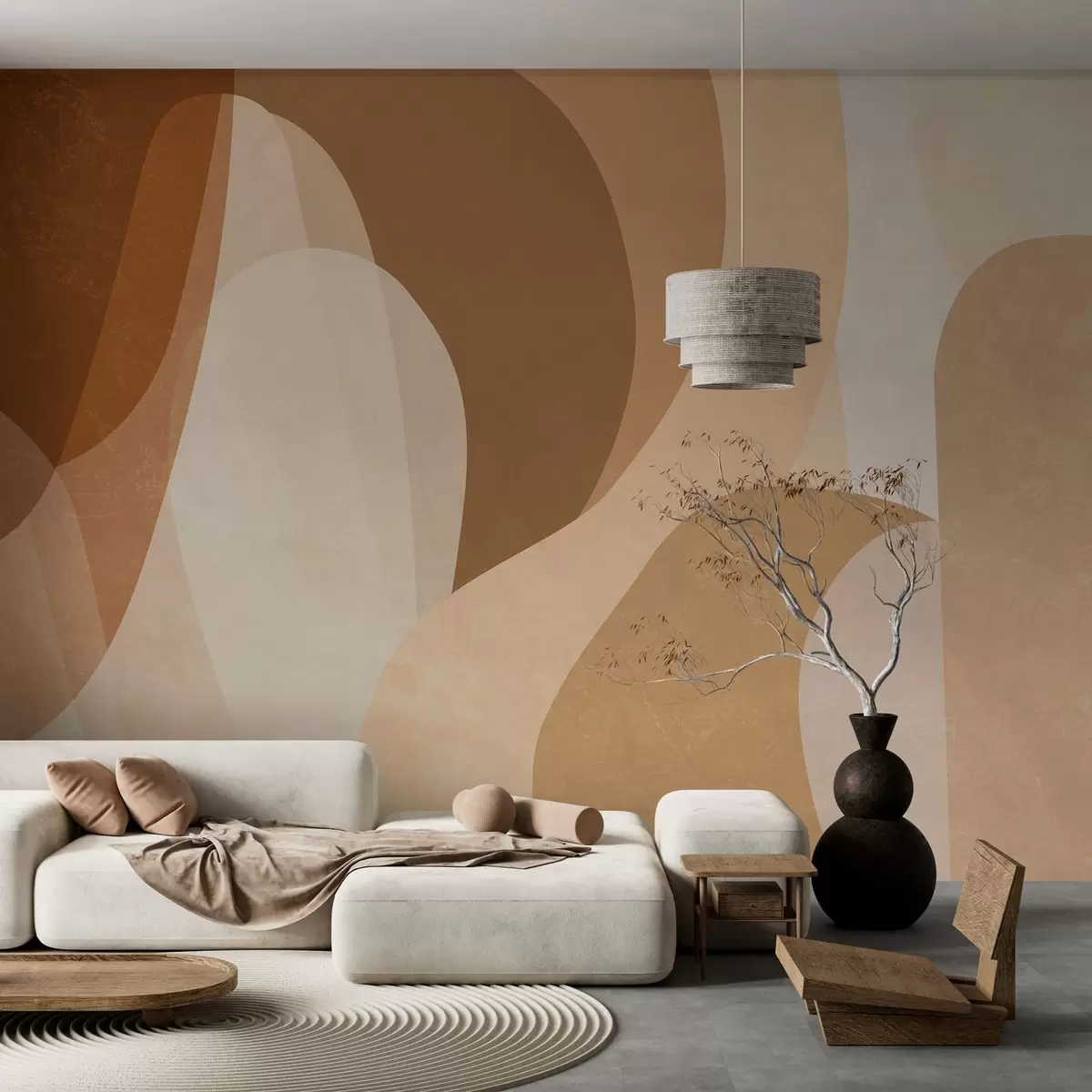 Fototapeten abstrakte Kurven in Braun-, Beige- und Rotbrauntönen N° w05387