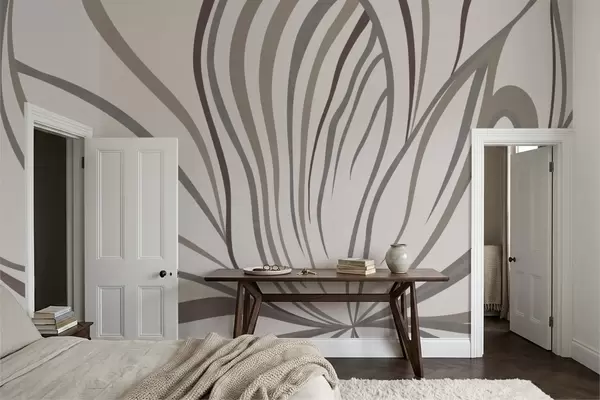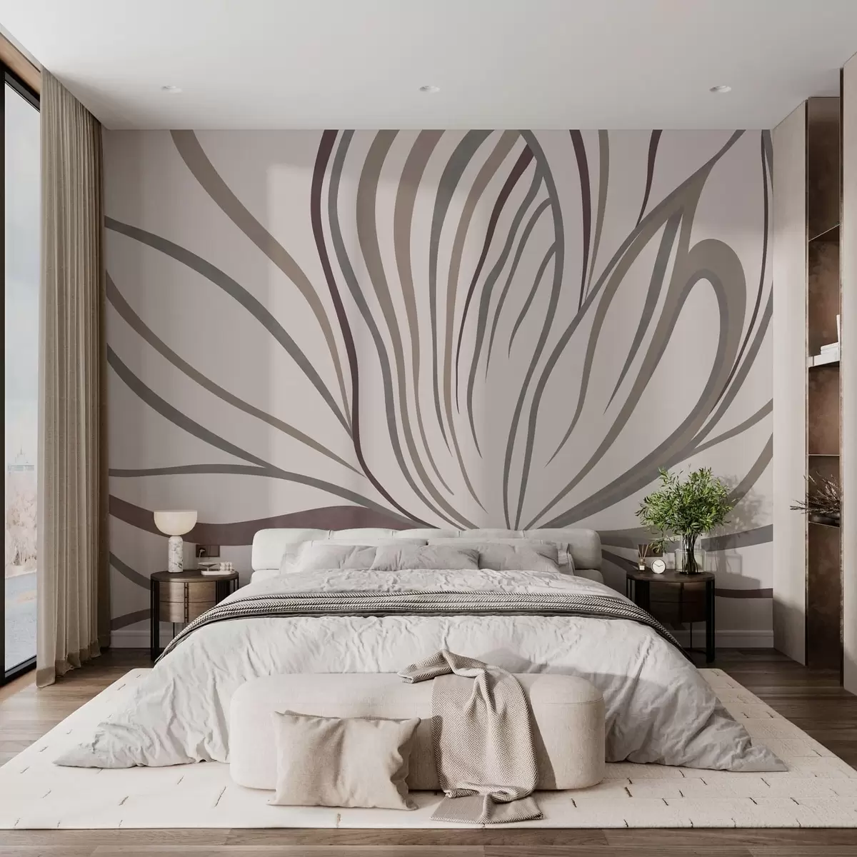 Fototapeten Abstrakte Blume mit Linien in Grau- und Rosatönen N° w05392