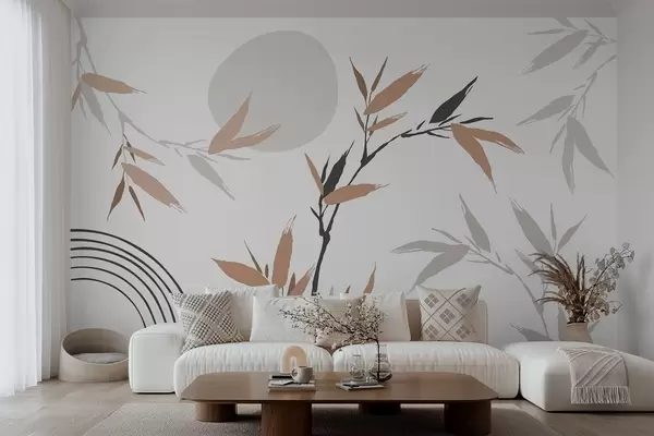 Fototapeten Abstrakter Zweig mit Blättern N° w05398