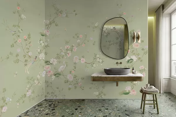 Sie können die Tapete sehr vorsichtig mit einem leicht feuchten Schwamm reinigen. Wir raten jedoch davon ab, die Tapete zu schrubben oder Reinigungsmittel zu verwenden, da dies die Oberfläche und die Farben der Tapete beschädigen kann.