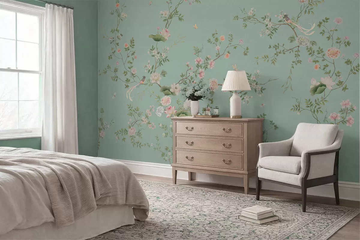 Sie können die Tapete sehr vorsichtig mit einem leicht feuchten Schwamm reinigen. Wir raten jedoch davon ab, die Tapete zu schrubben oder Reinigungsmittel zu verwenden, da dies die Oberfläche und die Farben der Tapete beschädigen kann.
