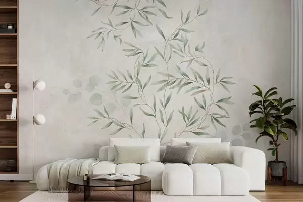Fototapeten Zartes botanisches Muster mit feinen Zweigen auf hellem Hintergrund N° w05424