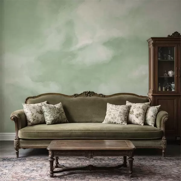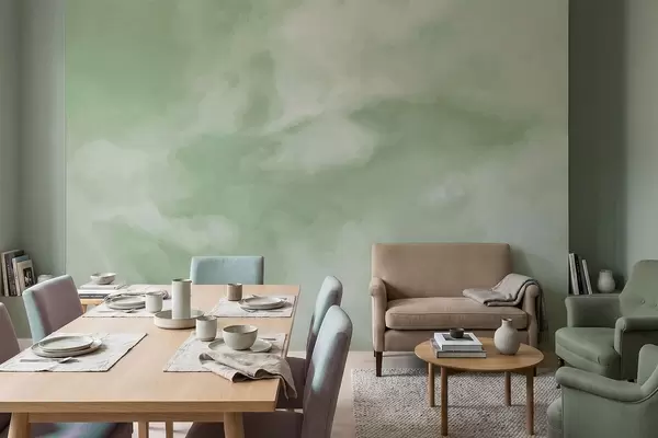 Fototapeten Sanfter, wolkiger Hintergrund in sanften Grüntönen N° w05426v2