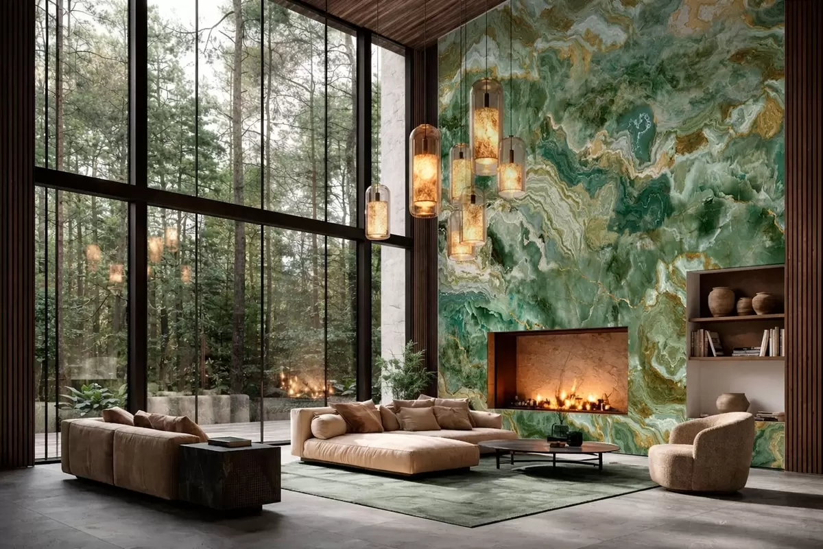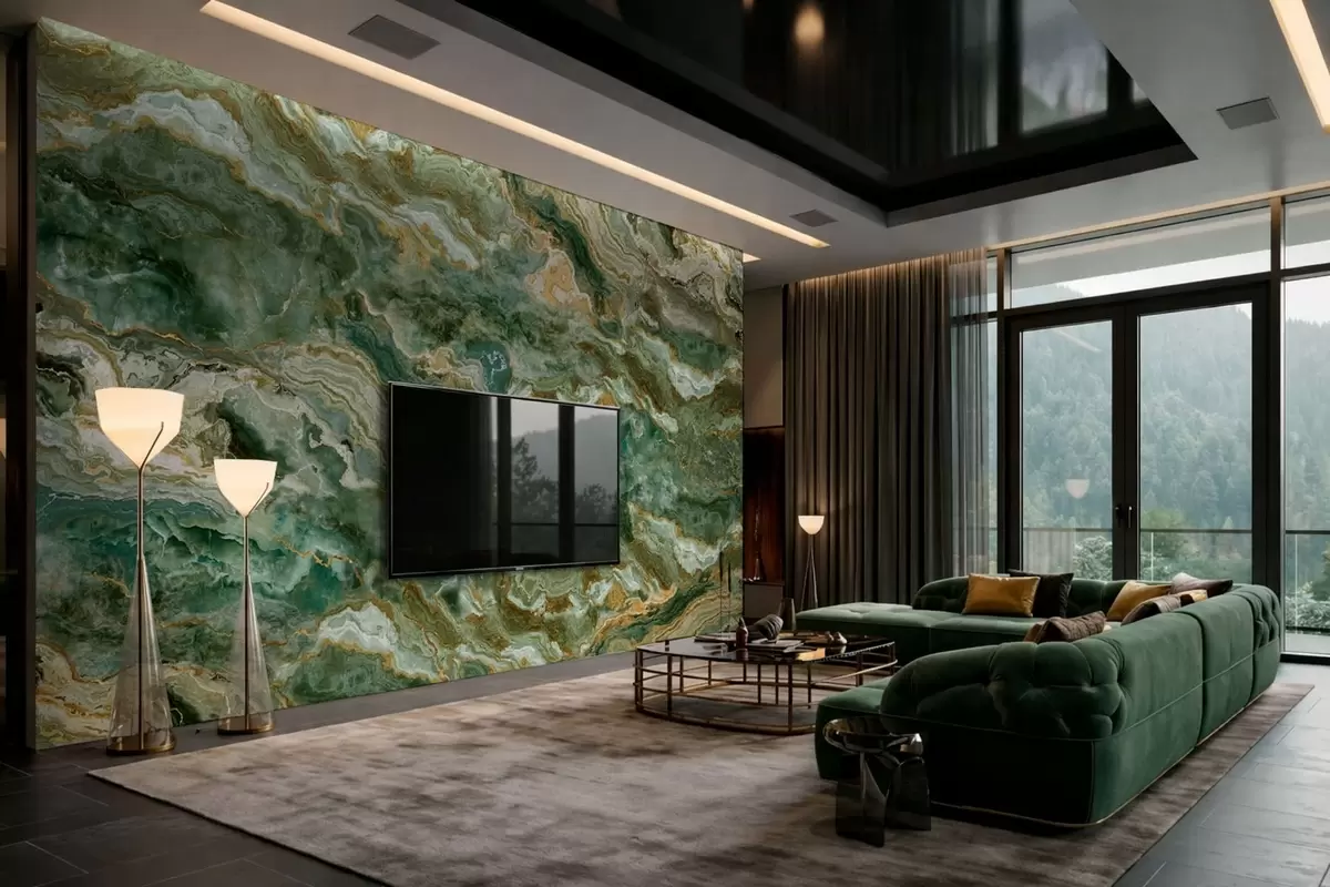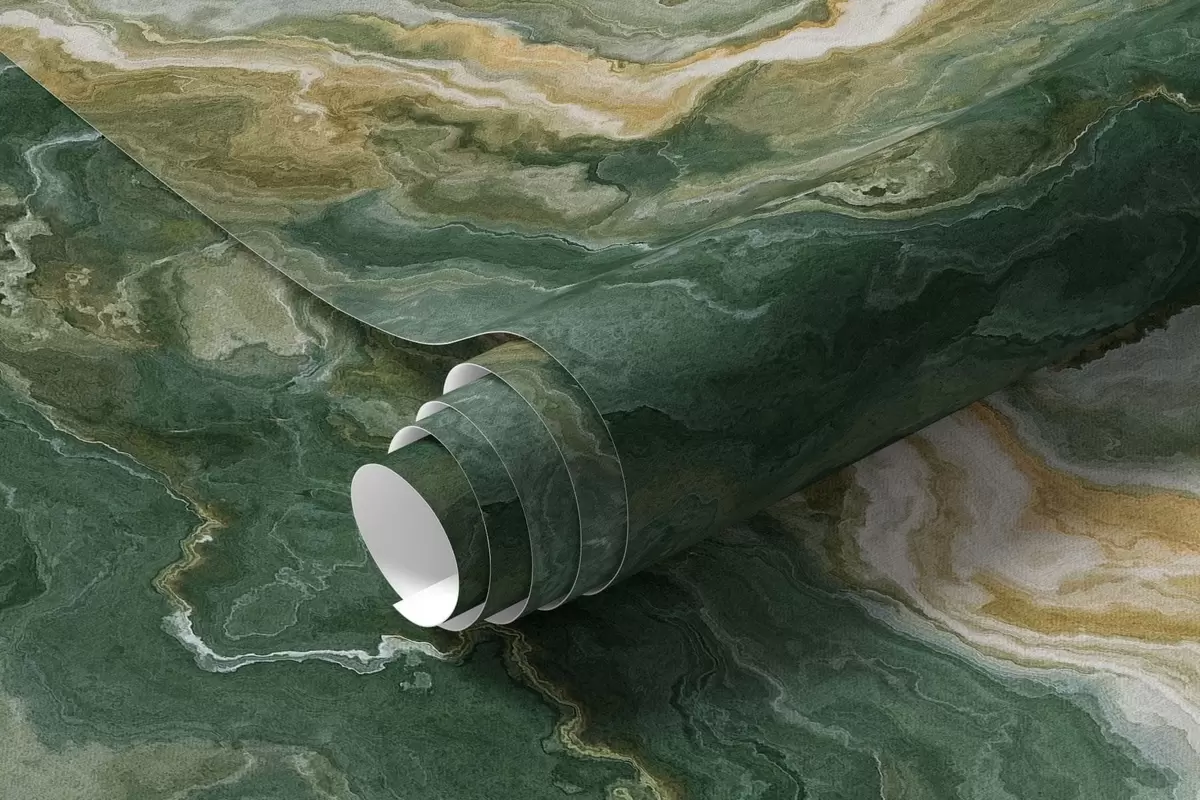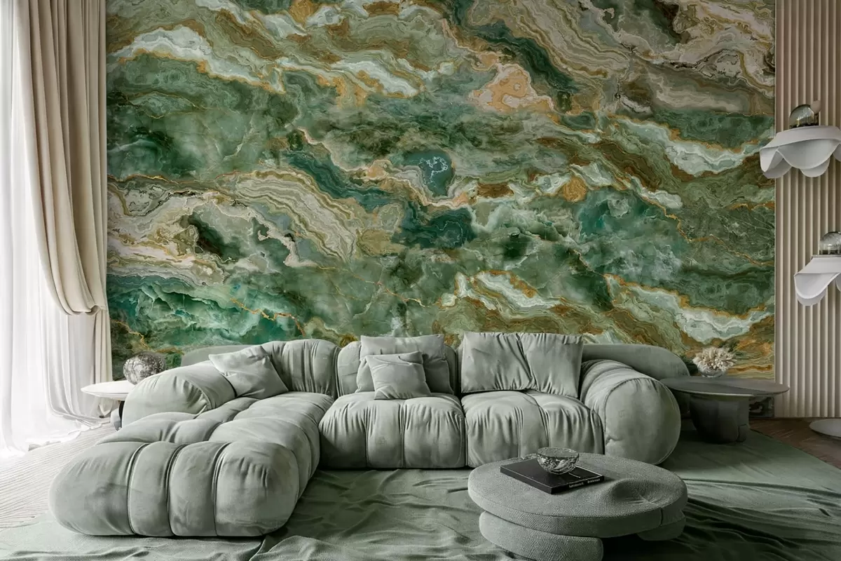 Fototapeten Struktur aus grünem Onyx mit fließenden, geschichteten Adern N° w05429