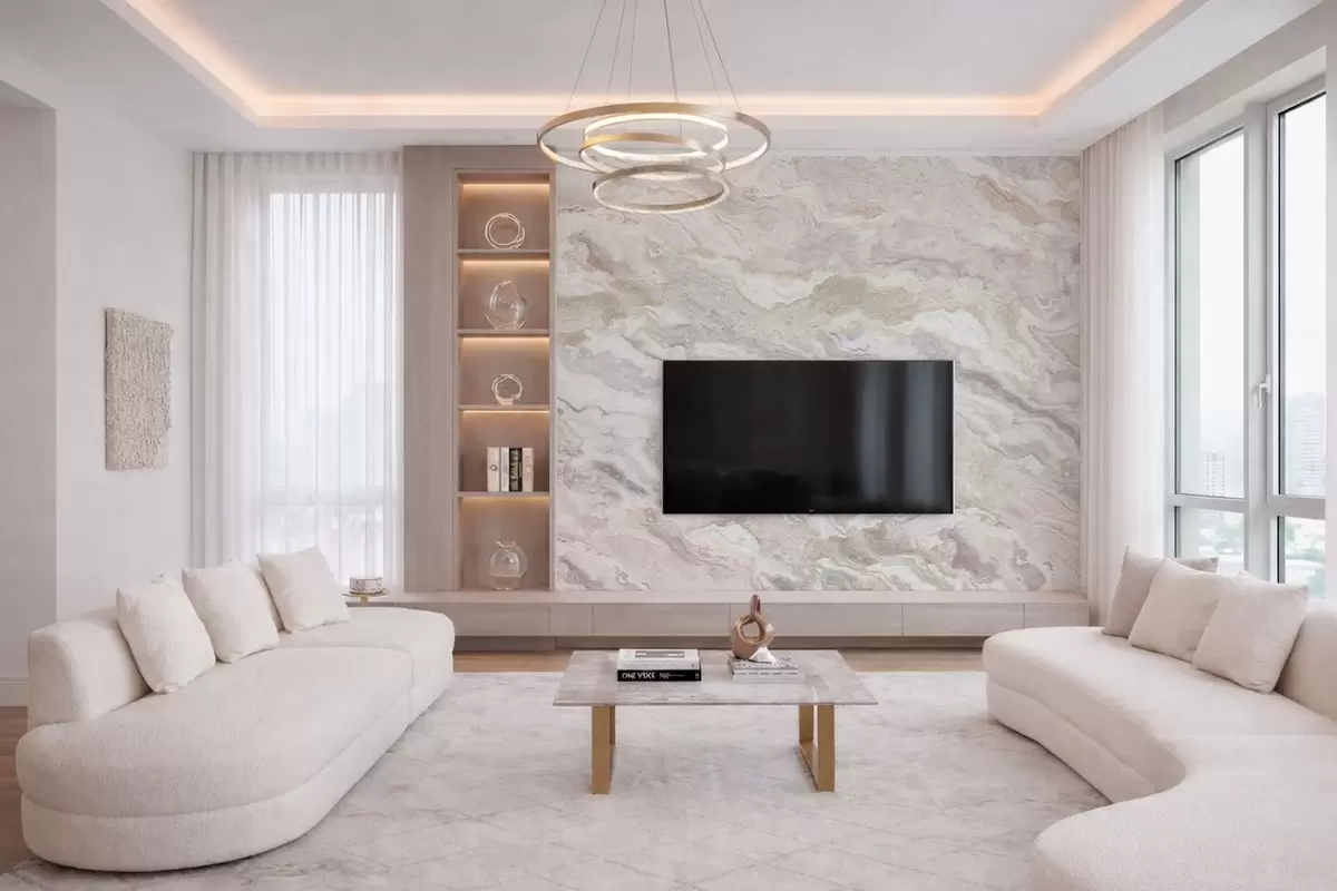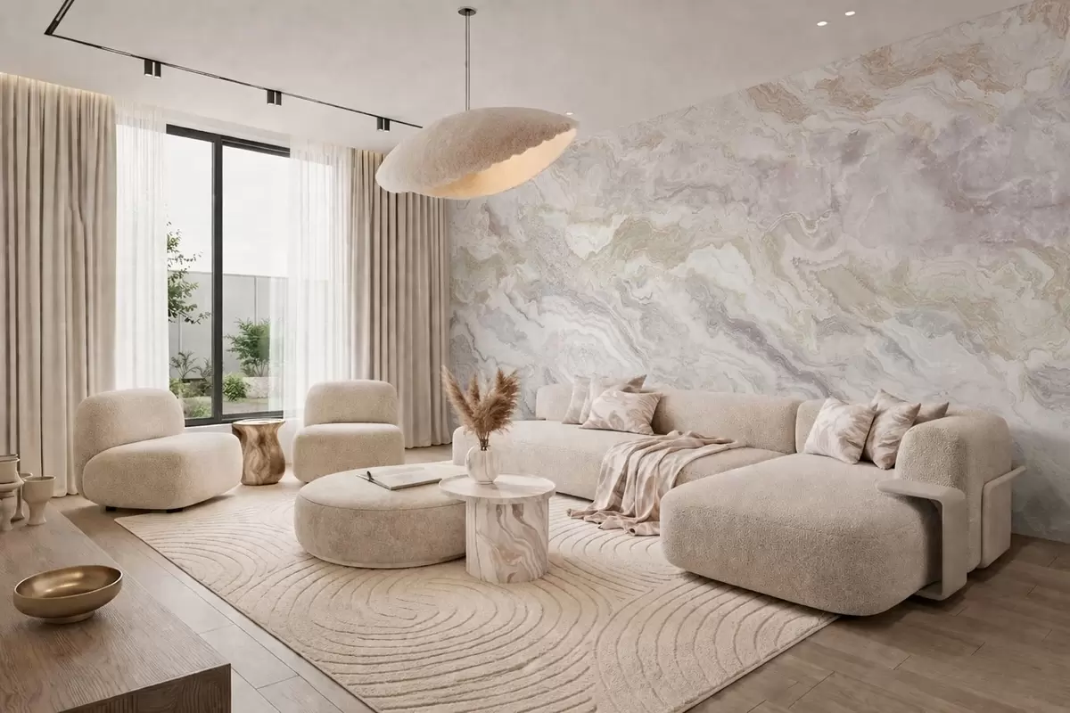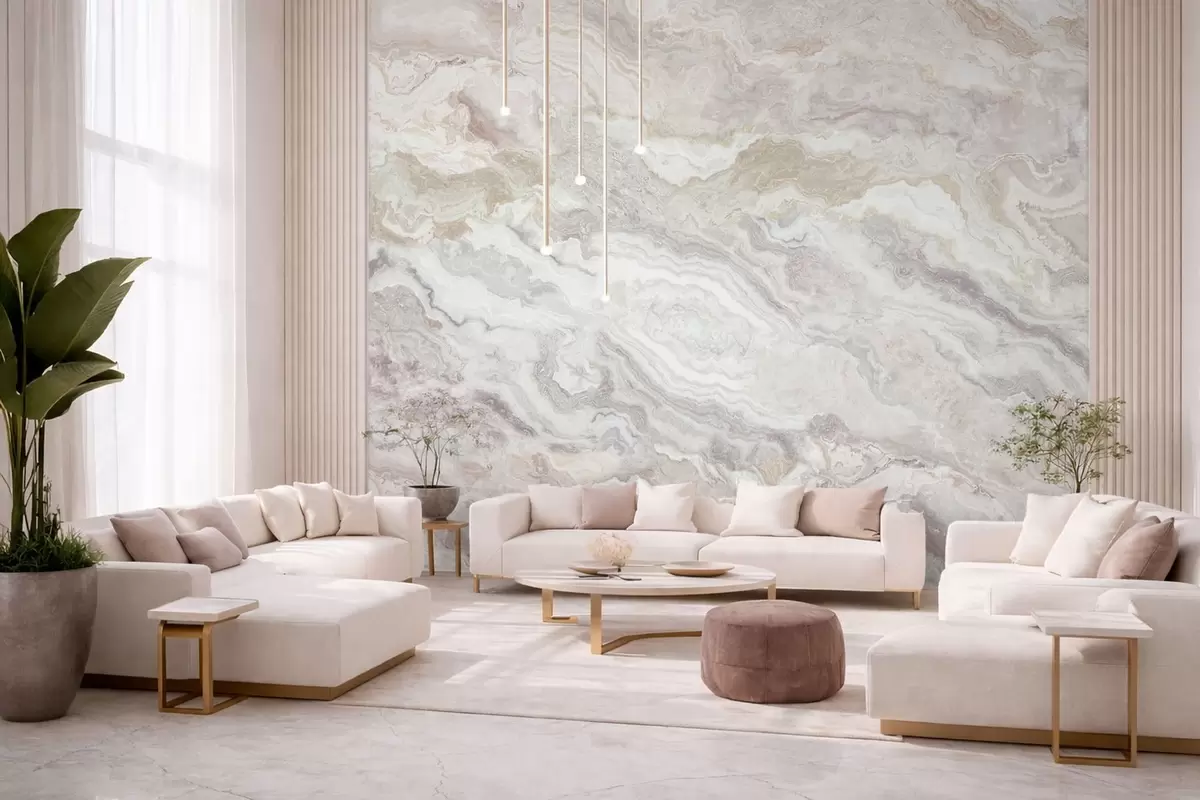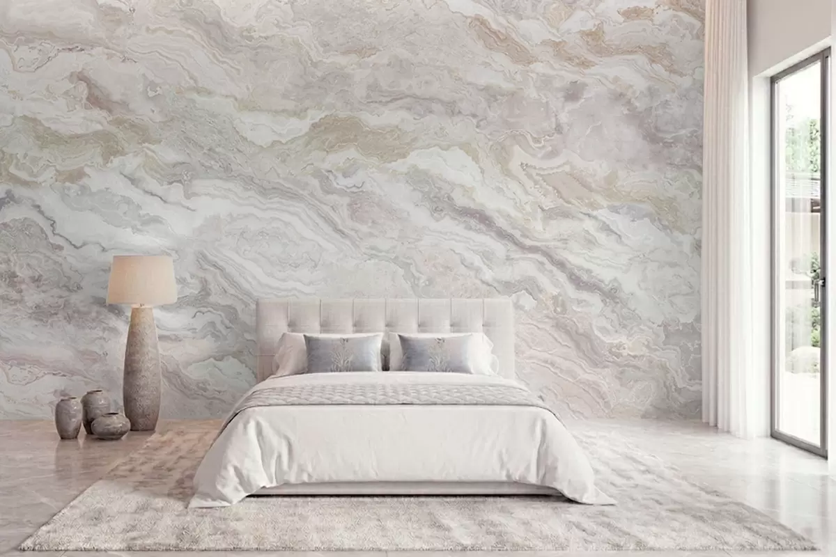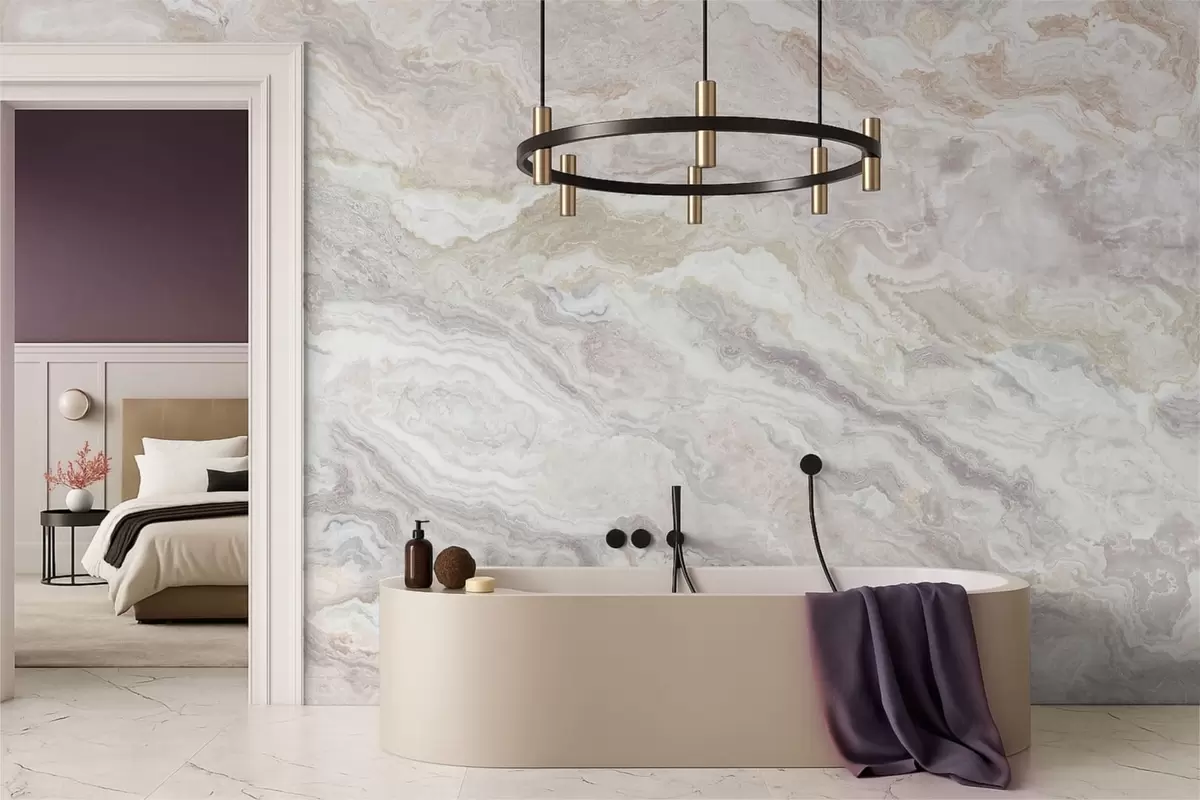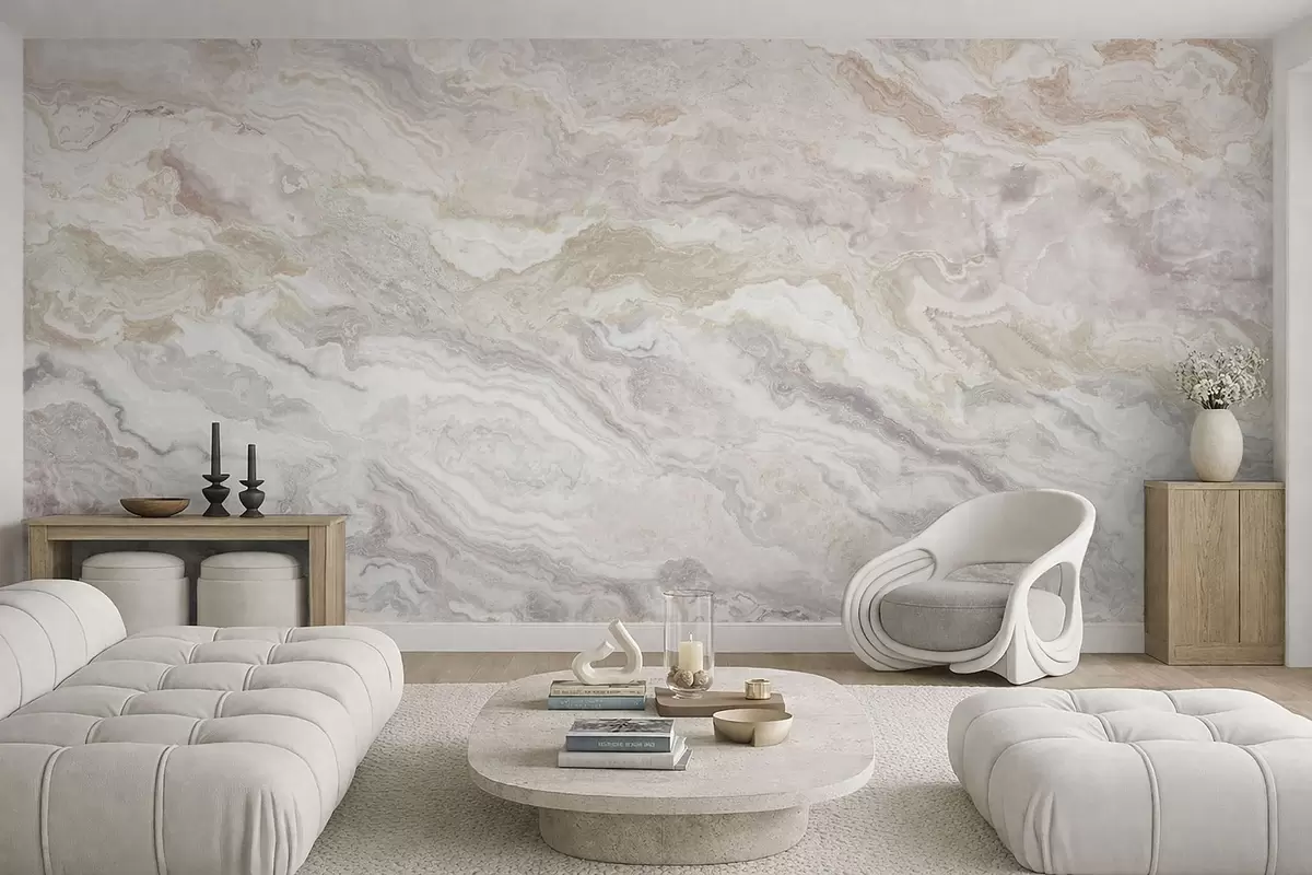 Fototapeten Heller Onyx mit fließenden Schichten in Beige und Grau N° w05430