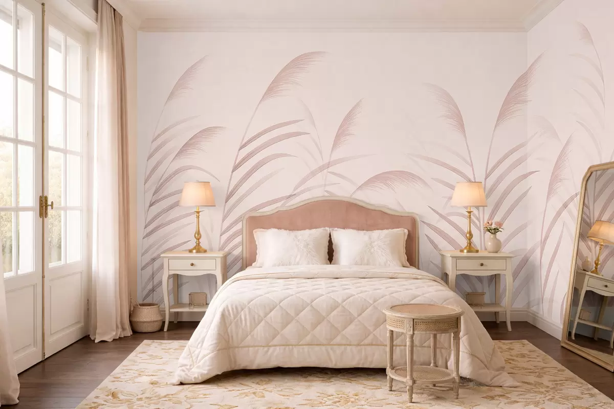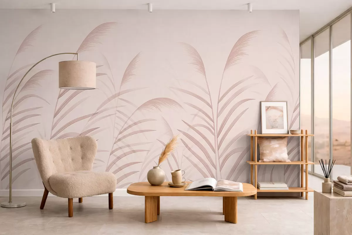 Fototapeten Minimalistische Gräser in zarten Rosatönen N° w05432v2