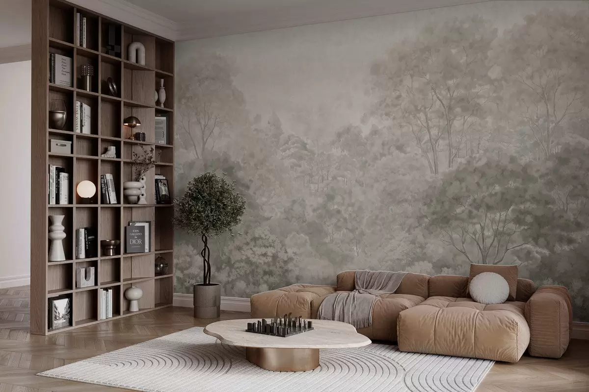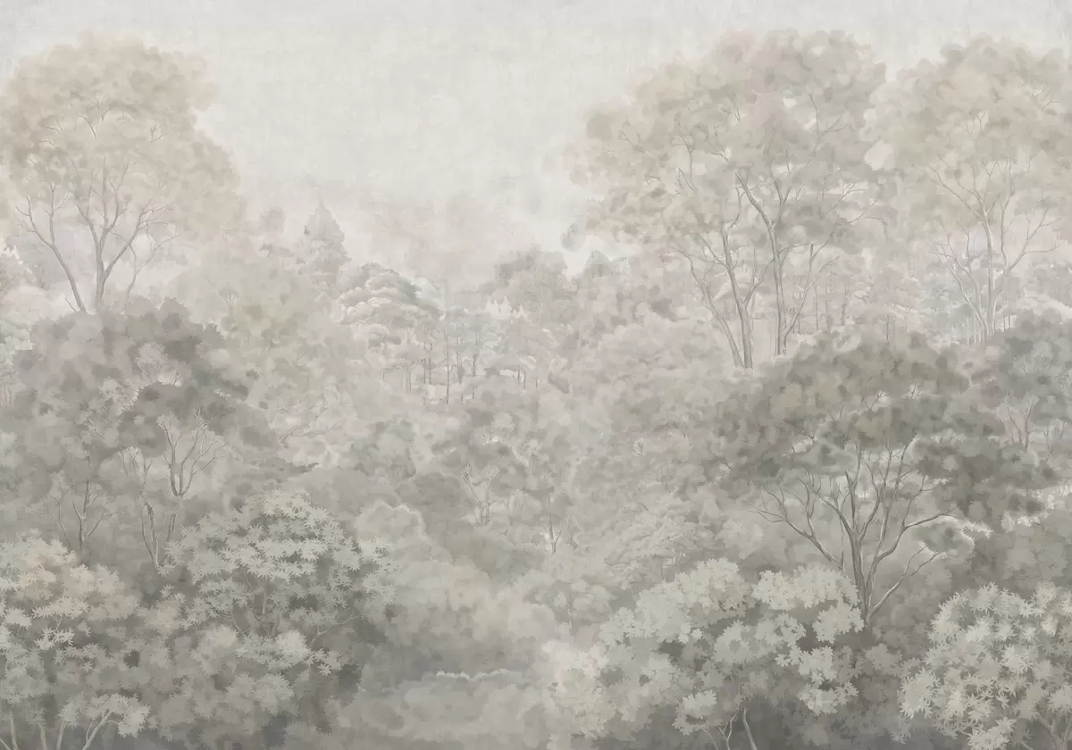 Fototapeten Vintage-Landschaft mit hellem Wald in Pastelltönen N° w05433v2