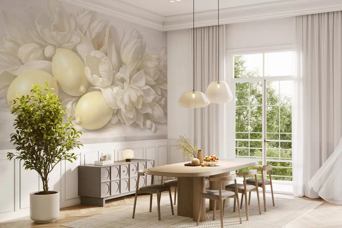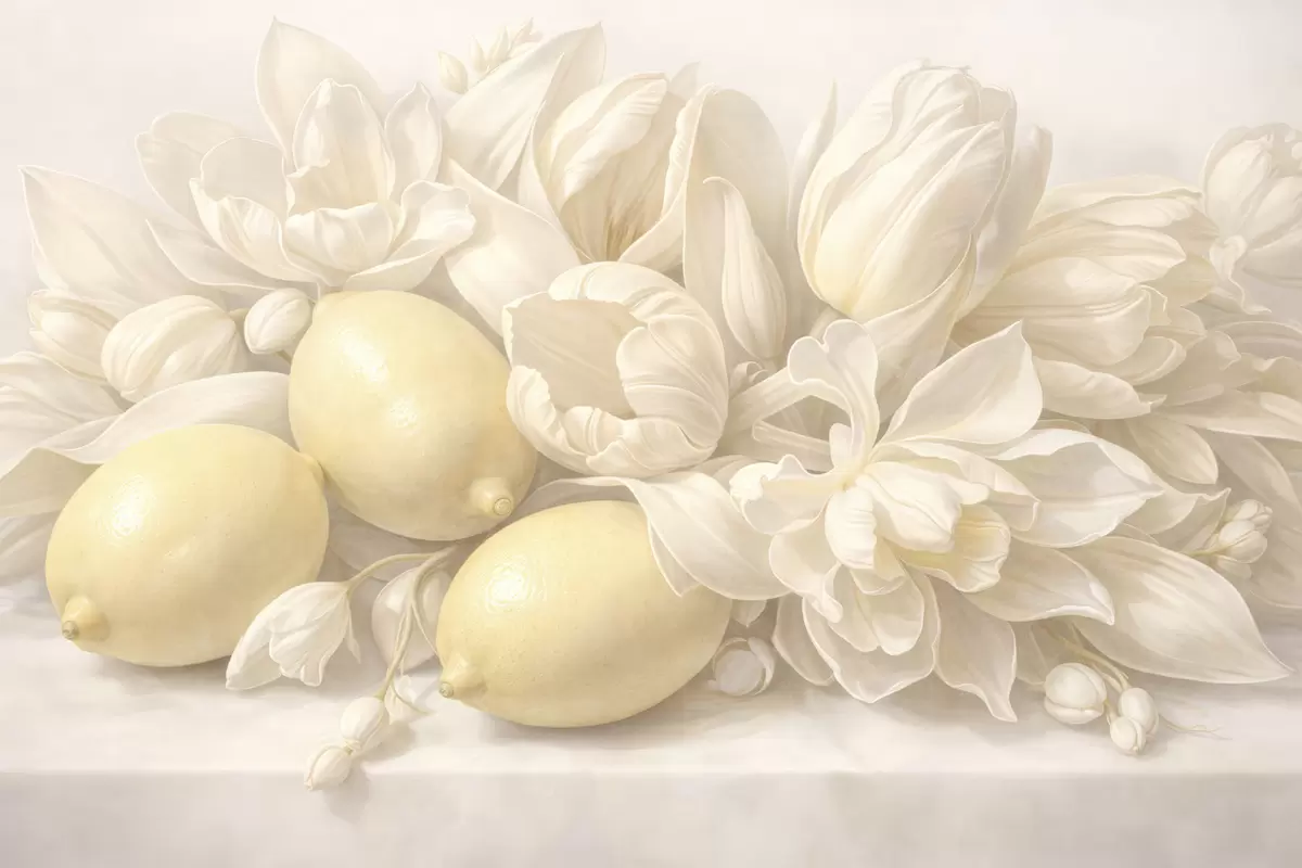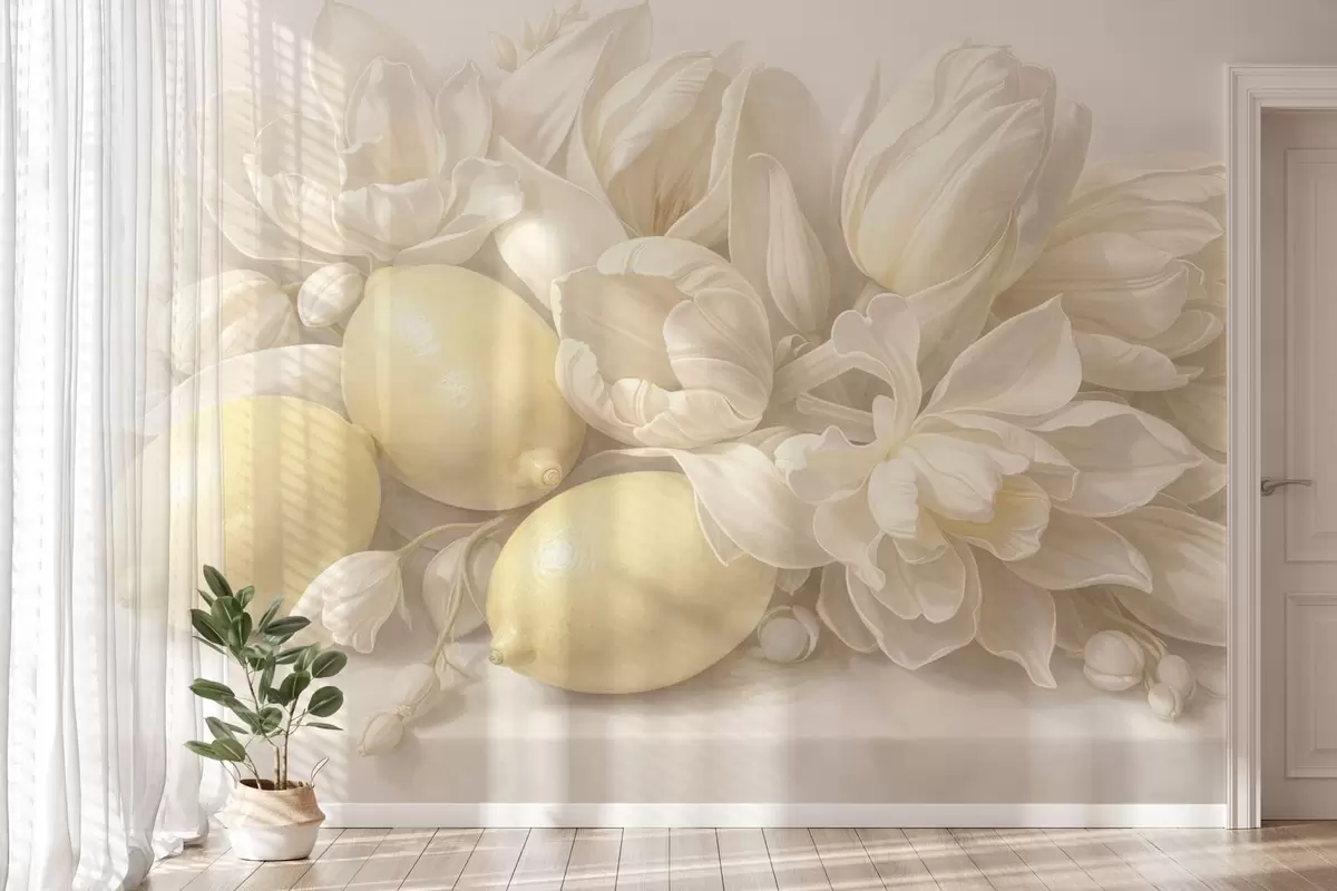 Fototapeten Zartes Blumenbouquet mit Zitronen N° w05449