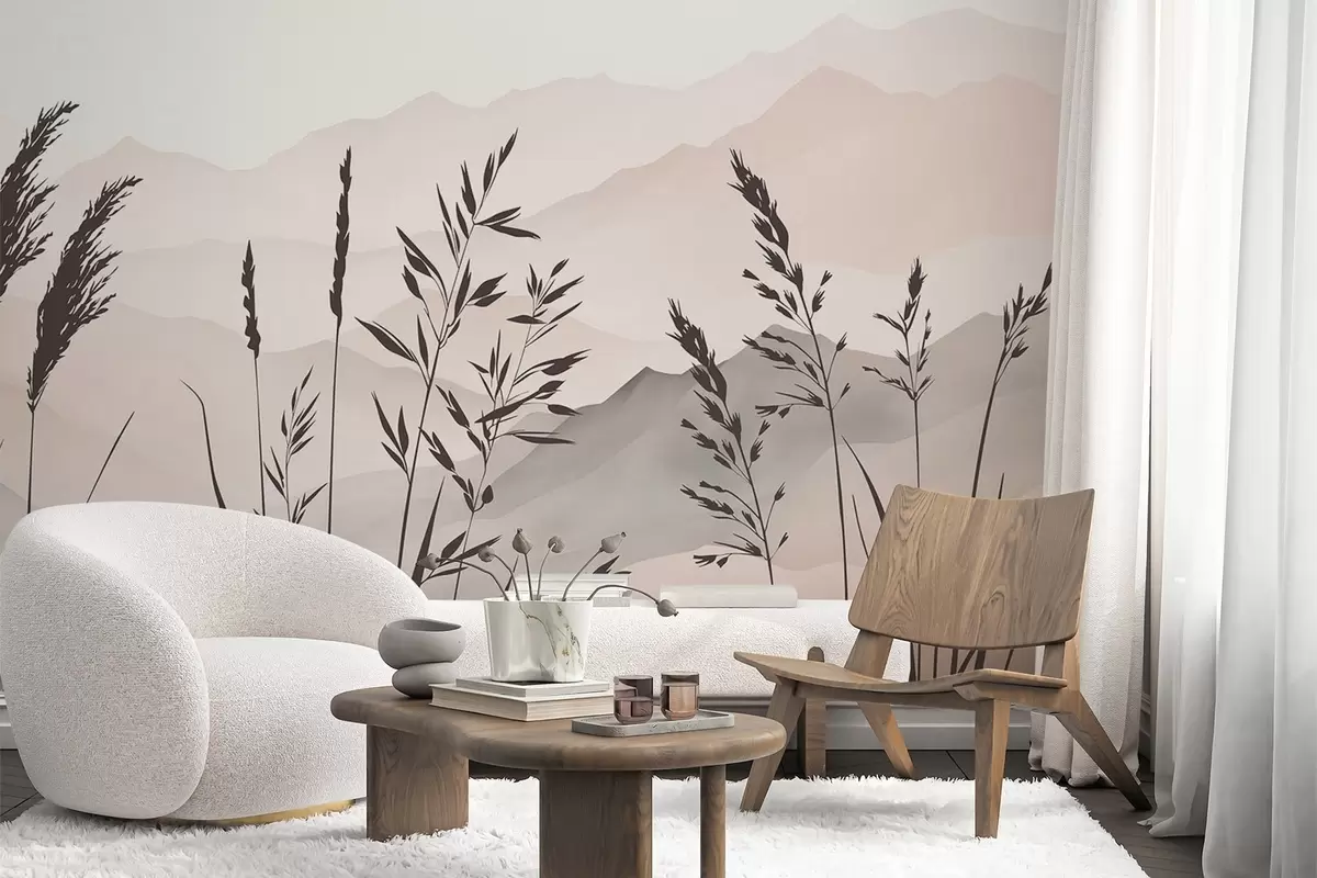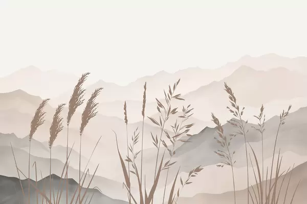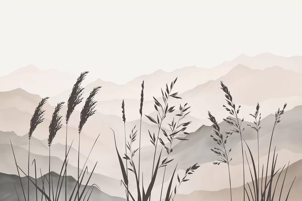 Fototapeten Grashalme vor dem Hintergrund der Berge N° w05501