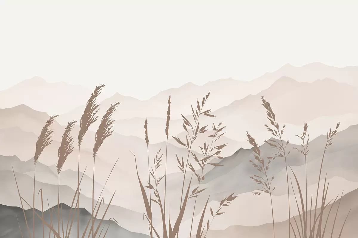 Fototapeten Grashalme vor dem Hintergrund der Berge N° w05501v1
