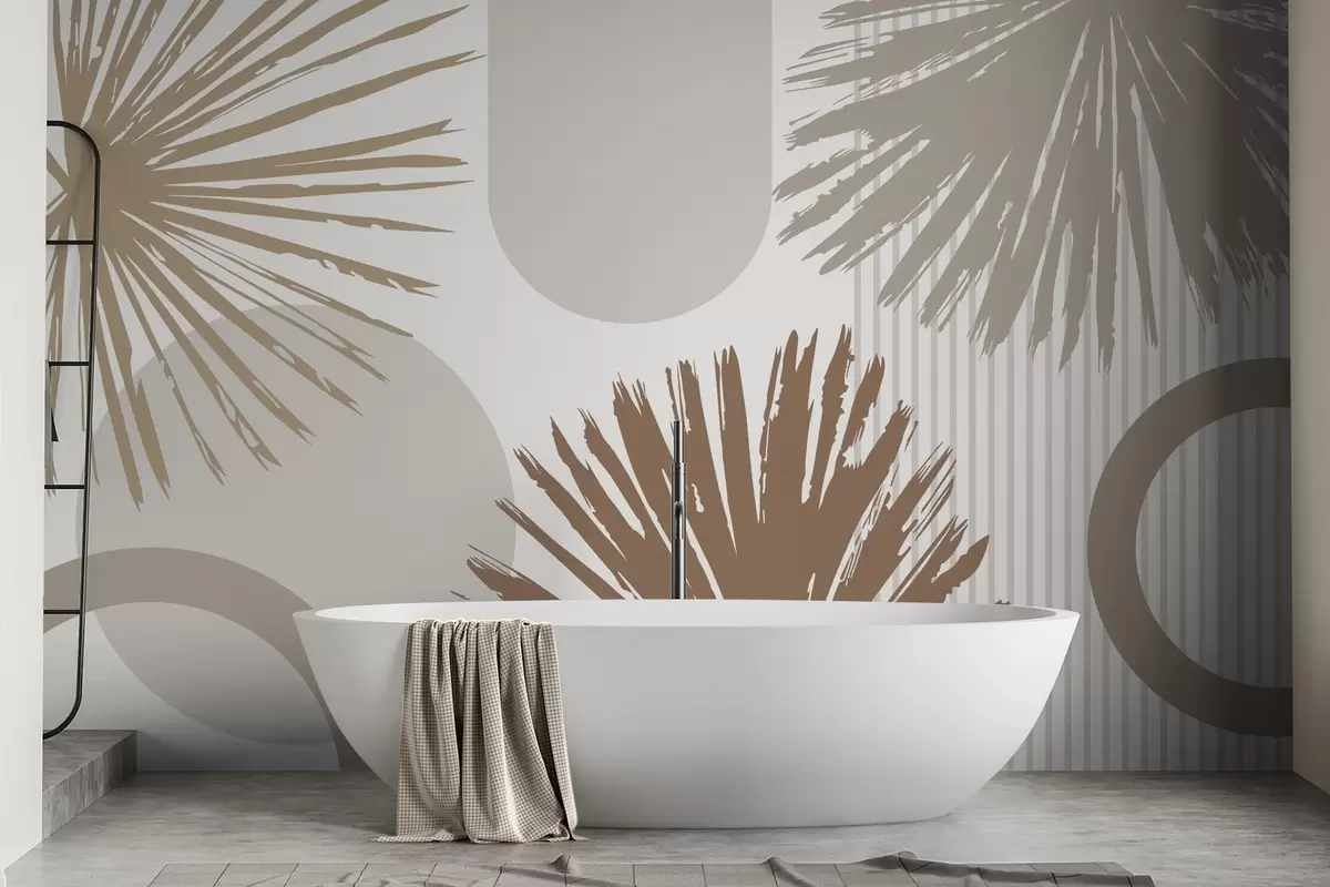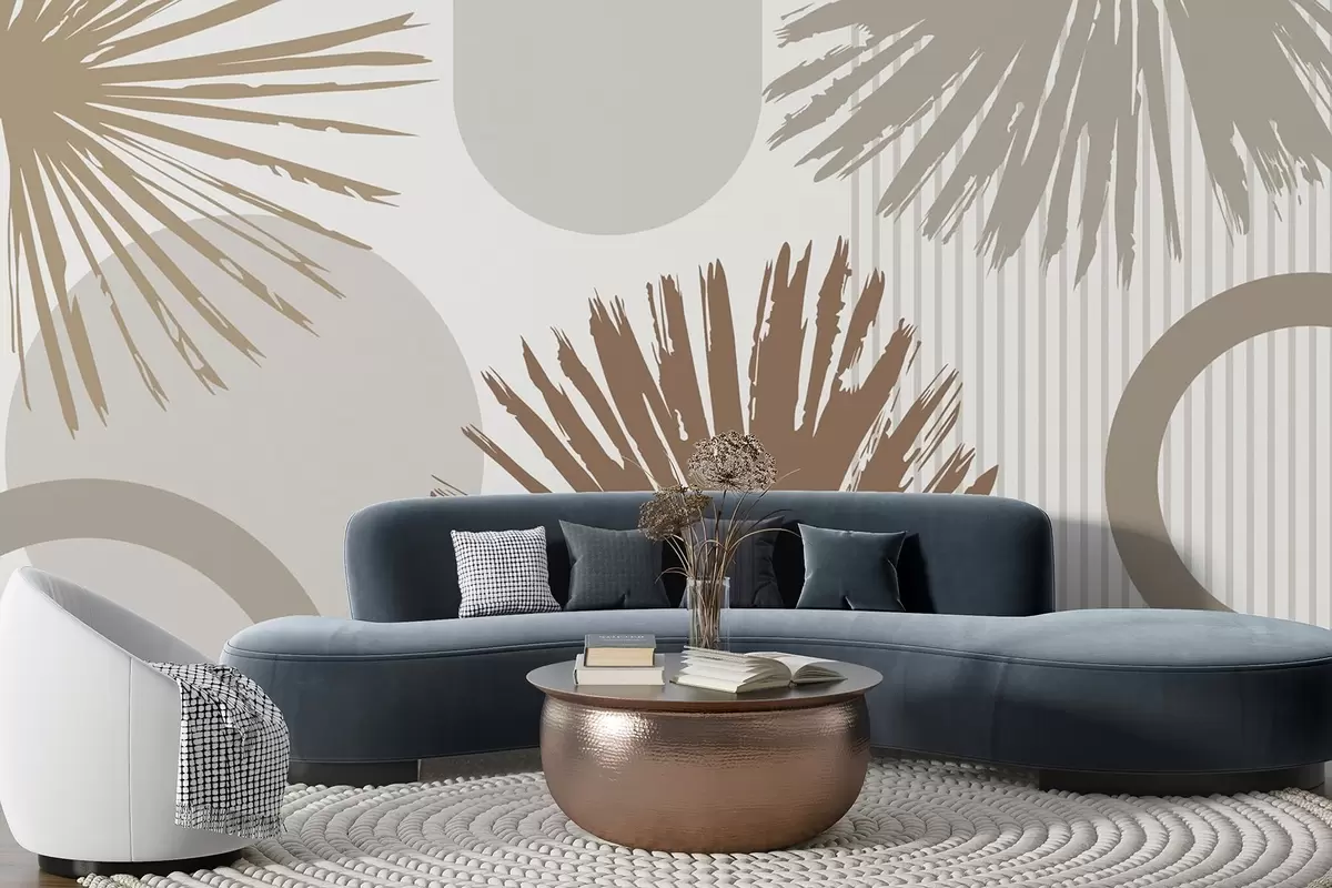 Fototapeten Abstraktion mit pflanzlichen und geometrischen Silhouetten N° w05505